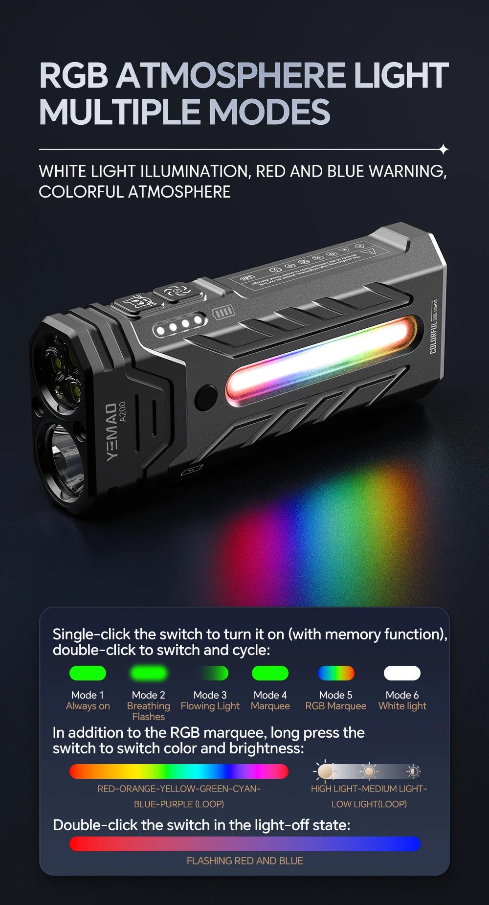 Light up your outdoor adventures with the 5200LMS Innovative Multi-functional Portable LED Flashlight by PASIION. Whether you’re hiking, camping, or exploring at night, this versatile flashlight is designed to deliver bright, reliable illumination wherever you go.