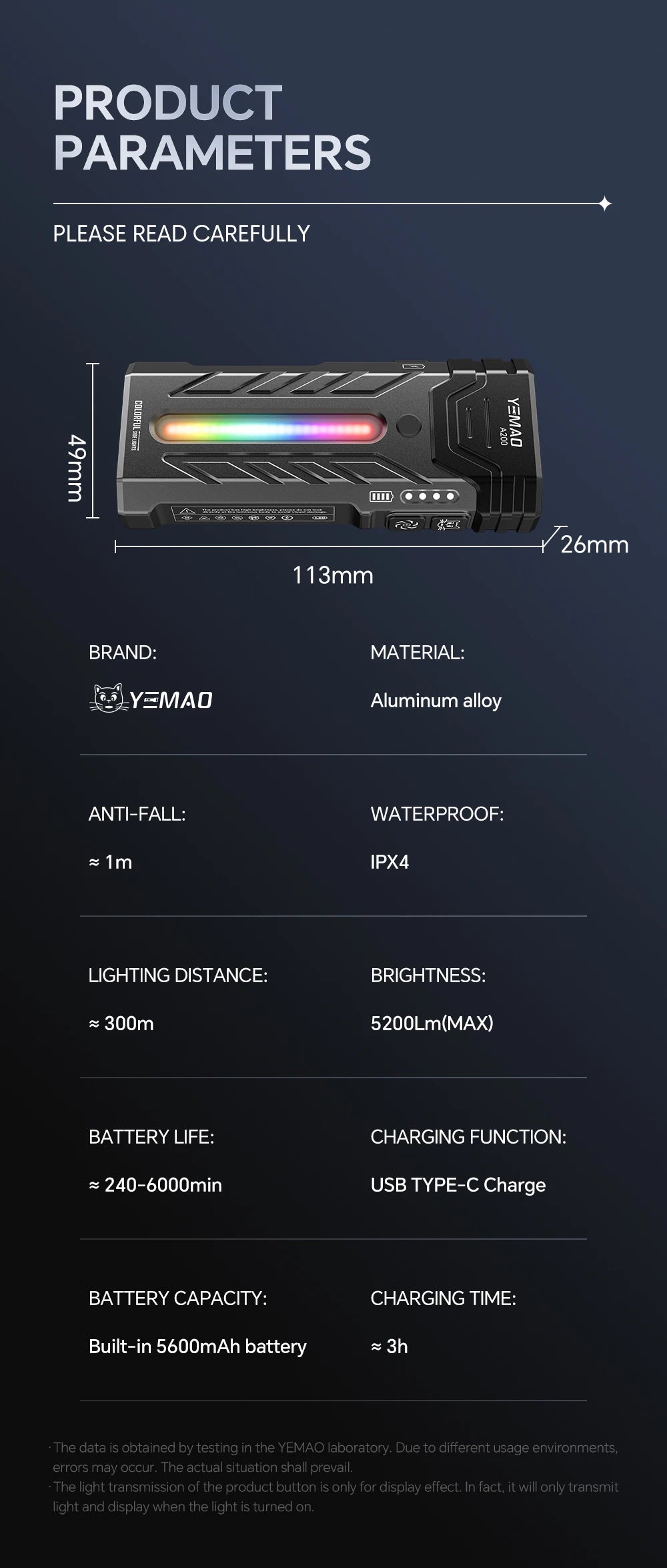 5200LMS Multi-Functional Portable LED Flashlight – Magnetic Torch for Hiking, Camping & Outdoor Adventures