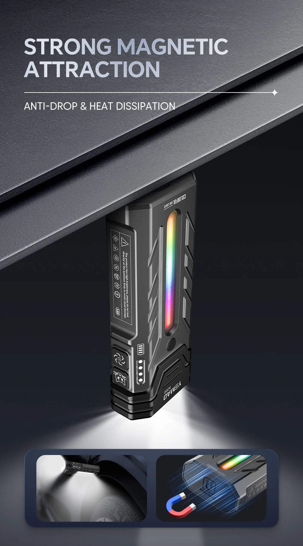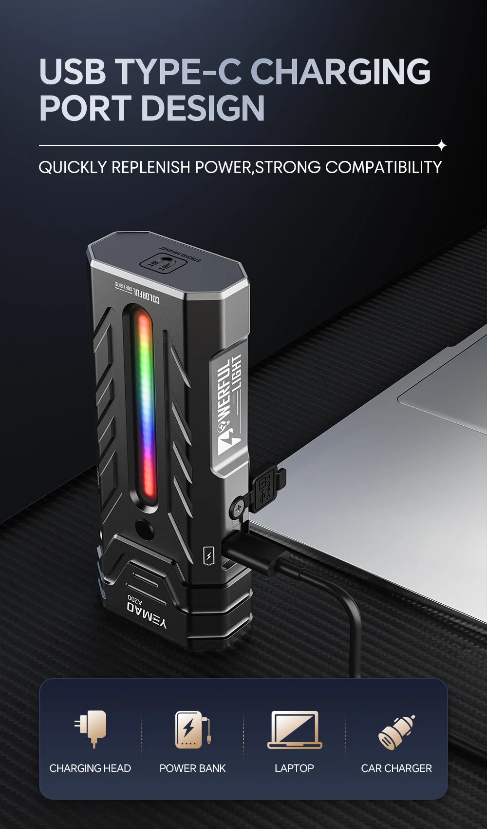 Built from durable aluminum alloy, this flashlight is both lightweight and tough, with a waterproof design to withstand rain, splashes, and rugged outdoor conditions. Its magnetic base allows hands-free use, making it perfect for tent setups, car repairs, or any adventure where you need both hands free.