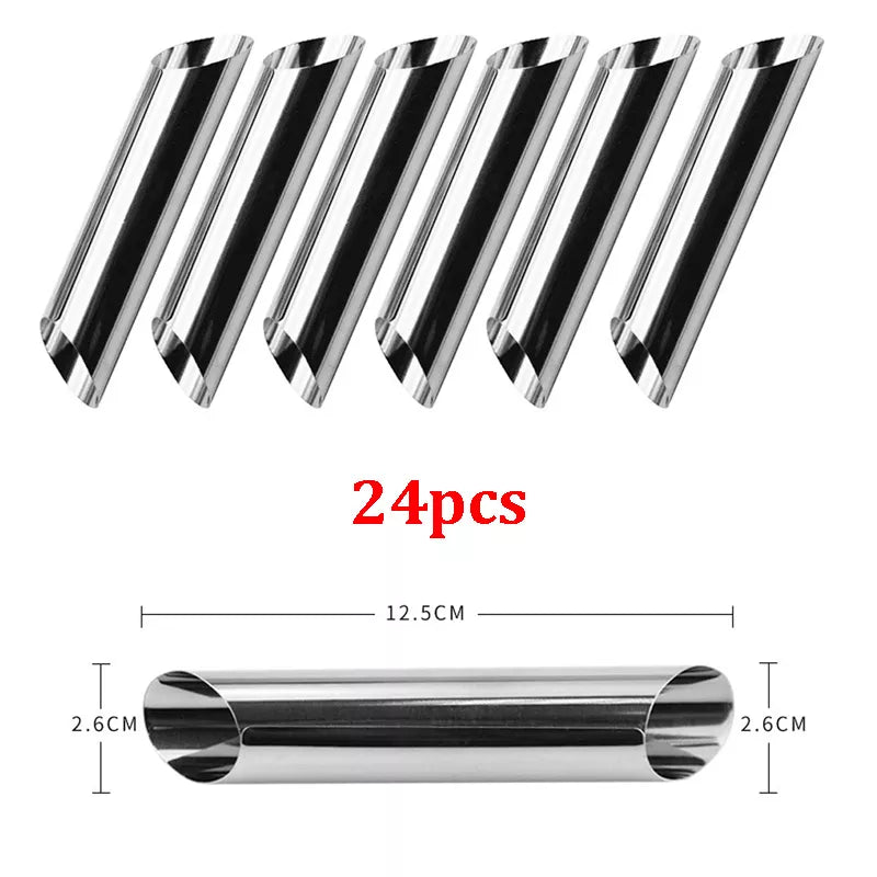 Premium Stainless Steel Baking Cones Set - 6/12/24 Piece Horn Pastry Roll Cake Mold Kit for Spiral Baked Croissants, Cookies, and Desserts - ZXH