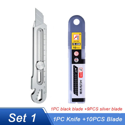 6-in-1 Stainless Steel Utility Knife: Multi-Function Design with Tail Break, Ruler, Bottle Opener, and Retractable Box Cutter - Essential Art Supplies