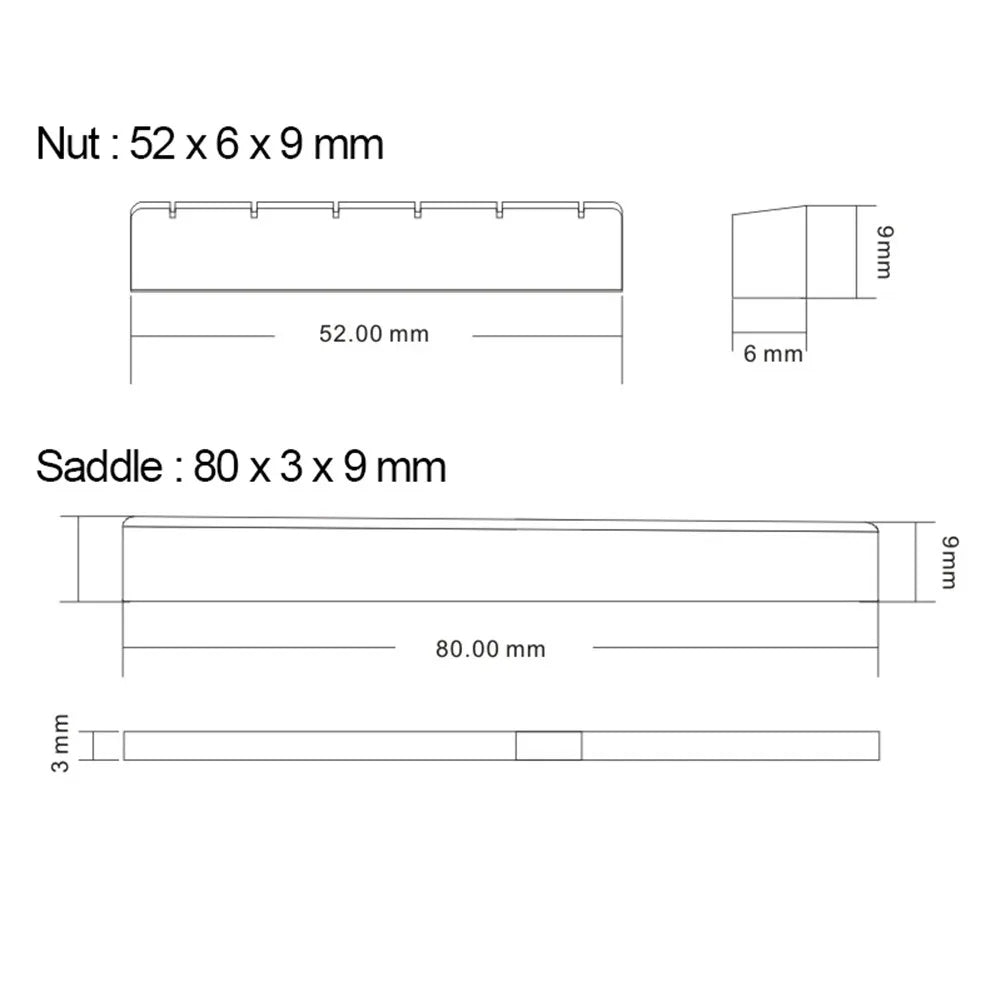 Installation and Compatibility: Easy to install, this saddle and nut set is suitable for most classical guitars. However, slight modifications might be needed to achieve the perfect fit, as every guitar has its unique dimensions. It's always recommended to consult with a professional luthier to ensure optimal performance and fit.
