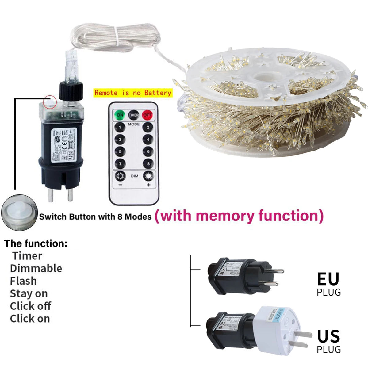 Cluster Firecracker String Lights – 6M-50M LED Fairy Lights for Christmas Tree, Wedding, Party & New Year Decoration