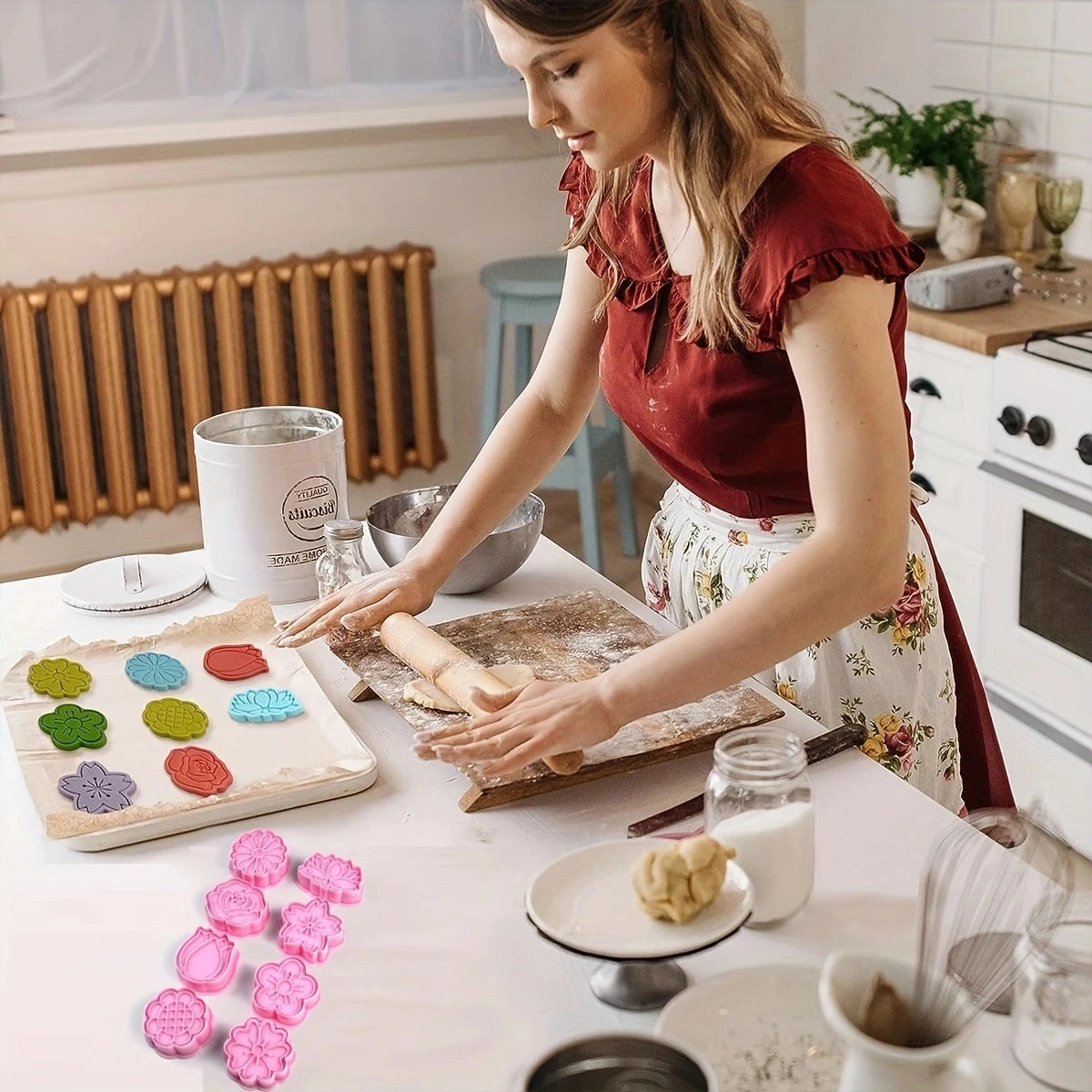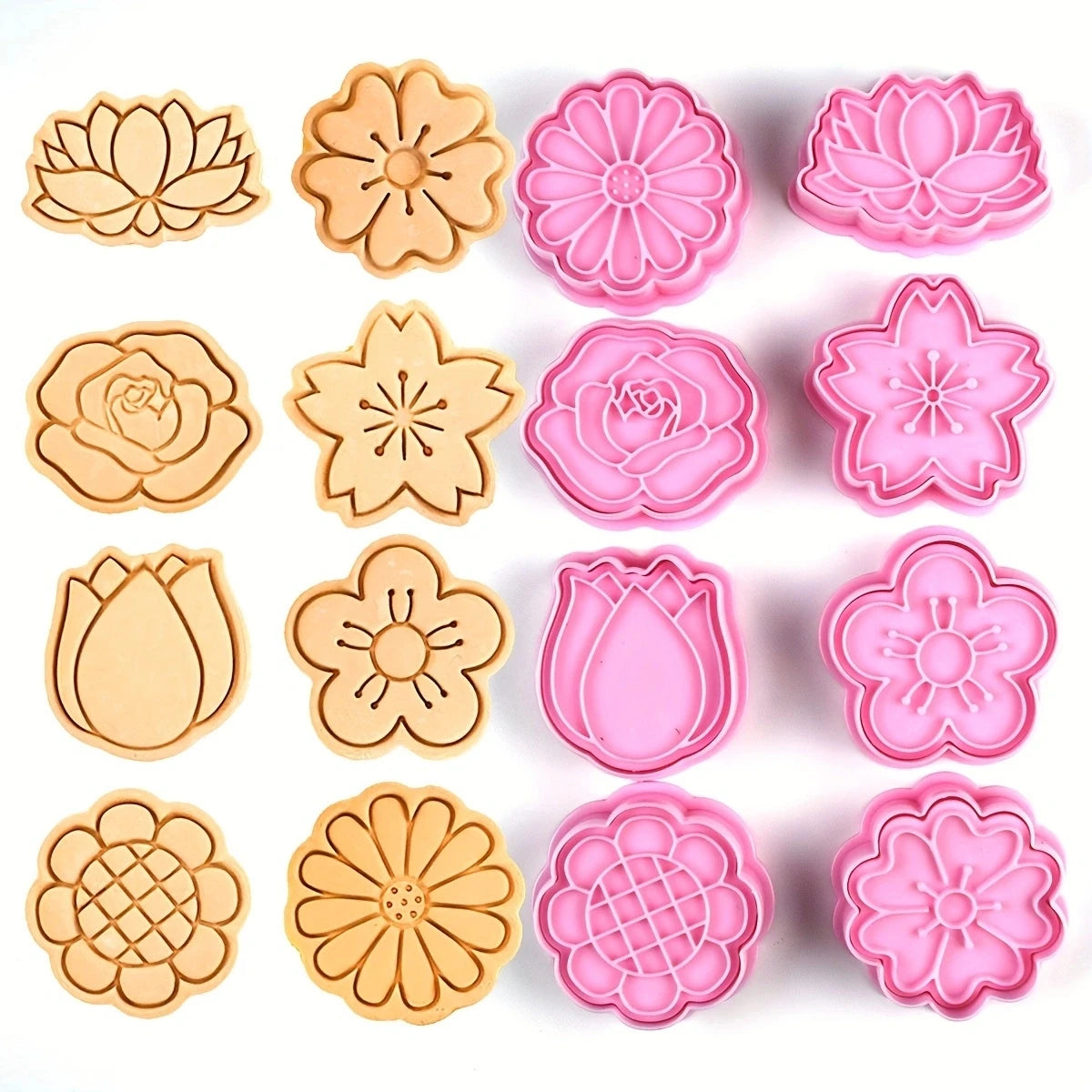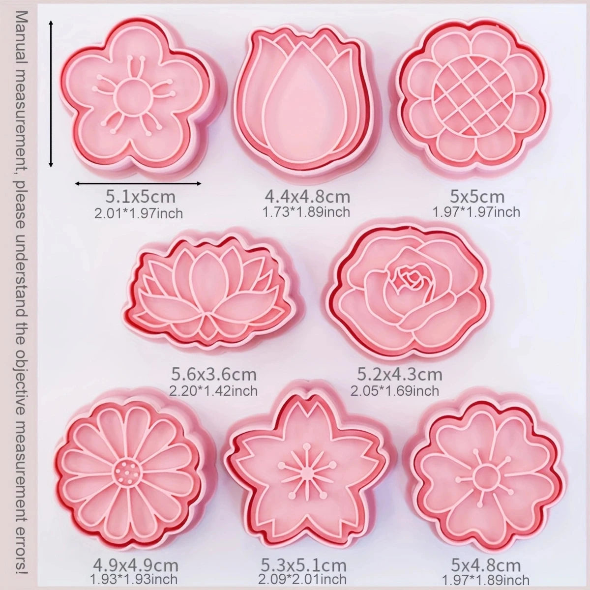 Elevate Your Baking Creations with Our 8Pcs Cartoon Flowers Cookies Cutters - Plastic Pressable Biscuit Mold and Cookie Stamp Set for Kitchen Baking and Pastry Fun!