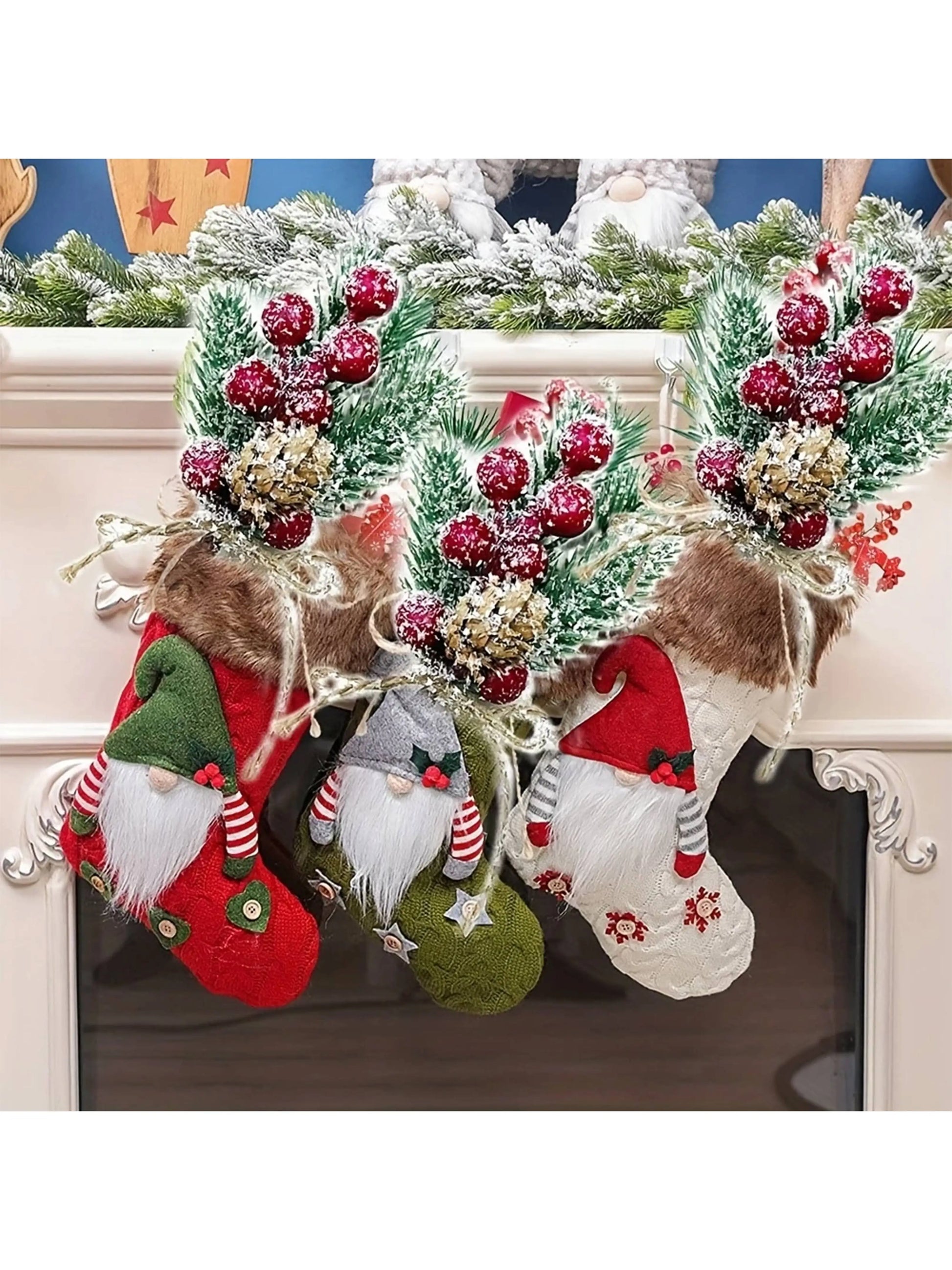 Bring the cozy charm of the holiday season indoors with this set of 5 realistic artificial winter berries and pine branches. Perfect for Christmas home décor, these lifelike plastic branches capture the festive spirit with vibrant red berries and rich green pine needles, adding a touch of seasonal elegance to any space. Ideal for indoor decoration, they can be used in wreaths, centerpieces, garlands, or DIY holiday crafts.