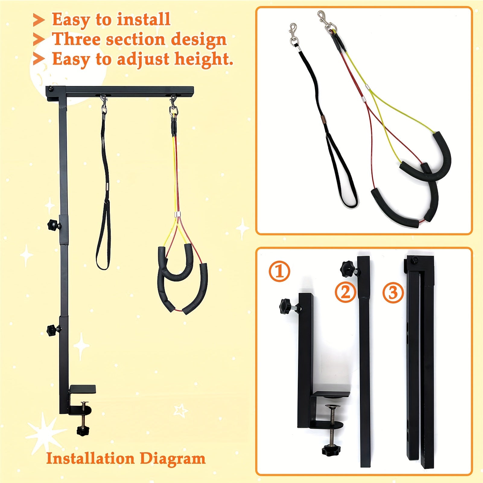 Adjustable Dog Grooming Arm with Clamp - 36" Height, No-Sit Haunch Holder, Three-Section Design for Medium & Small Dogs & Cats