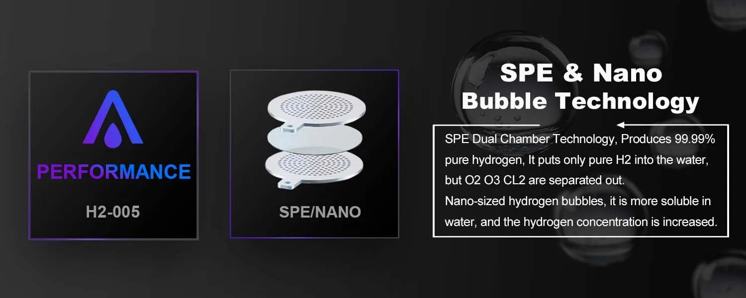 Advanced SPE & PEM Technology: Using Solid Polymer Electrolyte (SPE) and Proton Exchange Membrane (PEM) technologies, the ALTHY Hydrogen Water Generator produces 99.99% pure hydrogen by separating harmful elements such as oxygen (O2), ozone (O3), and chlorine (Cl2). This ensures you’re drinking clean, hydrogen-enriched water that’s safe and beneficial for your body.