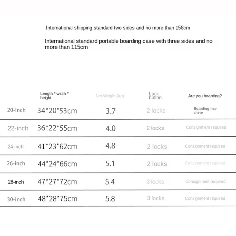 Spacious & Versatile Sizes: Available in 20, 22, 28, and 30-inch sizes, this luggage caters to your specific travel needs. Whether you're traveling light with a carry-on suitcase or packing everything for a long trip, there's a perfect size for you.