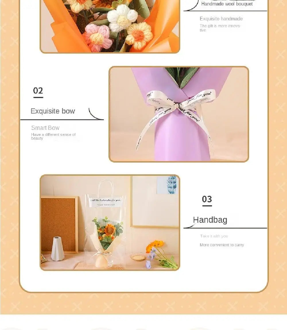 Unlike fresh flowers, this eternal crochet bouquet will never wilt, fade, or require water, making it an ideal long-lasting keepsake. Its handmade craftsmanship ensures each flower is unique, thoughtful, and full of character. Use it to decorate your living space, gift a loved one, or brighten up a party, and enjoy its timeless beauty year after year.