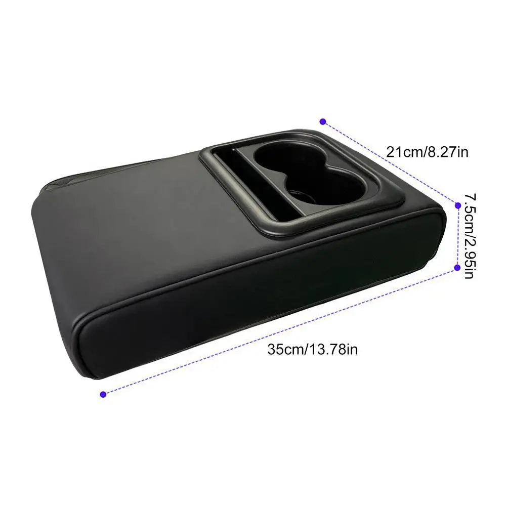 Auto Center Console Armrest Cushion with 2 Cup Holder - PU Leather Armrest Pad, Portable Car Armrest Pillow Cover, Height Adjustable Pad
