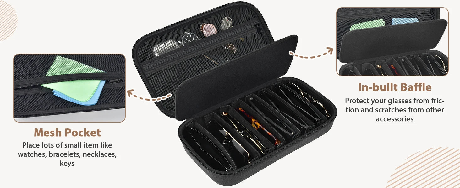 Extra Storage for Accessories: Large mesh pocket inside is perfect for small essentials like bracelets, watches, keys, or additional glasses pouches.