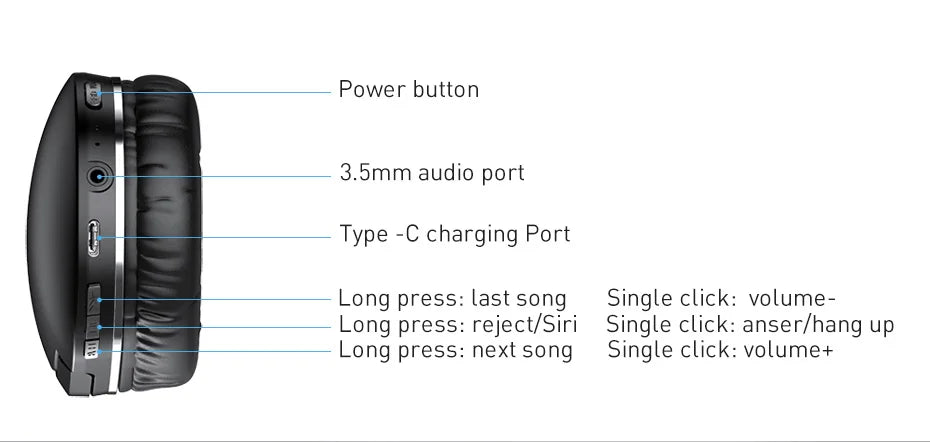 Easy Controls for Convenient Use: With easy-to-use controls on the left ear cup, you can easily manage your music and calls. Skip tracks, adjust volume, reject calls, or activate Siri—all with just the press of a button. The 3.5mm audio jack also allows you to use the headphones in wired mode if your battery runs low.