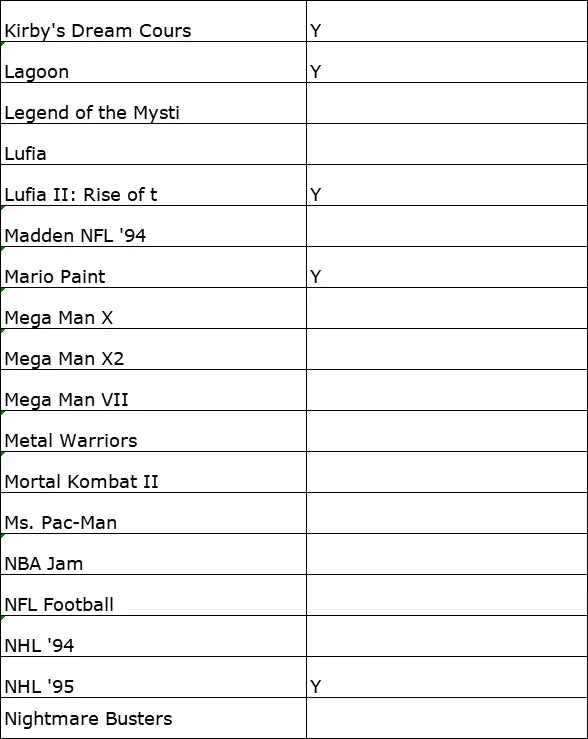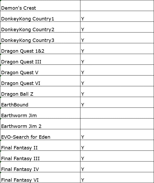 138 Games in One Cartridge: Includes a wide variety of unique SNES titles with no repeats.
