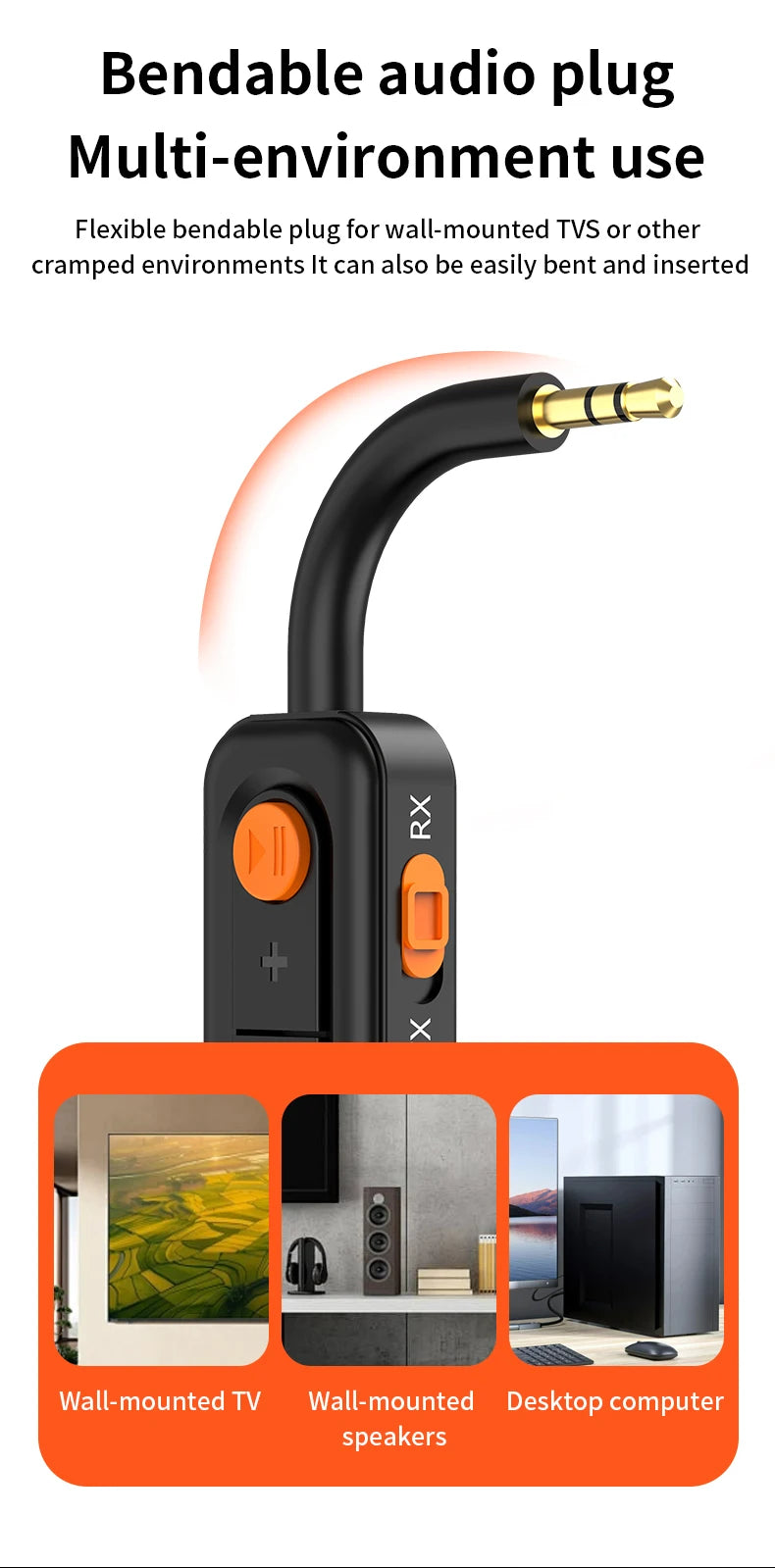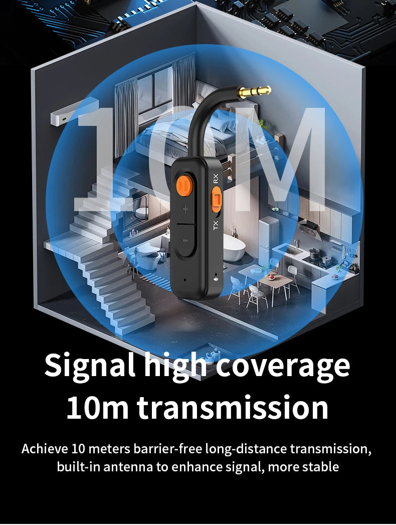 - Transmitter Mode: TV, PC, projectors, Bluetooth headphones, earphones, Bluetooth speakers, and more.
