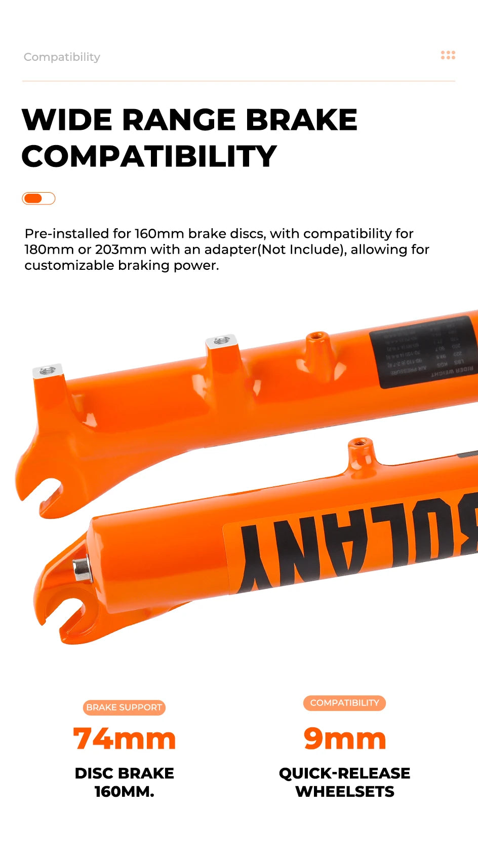 ⚙️ Quick Release & Easy Installation: The 9x100mm quick release system makes installing and removing the fork a breeze. Whether you're upgrading your bike or need to swap out forks, the quick release allows for easy and fast adjustments.