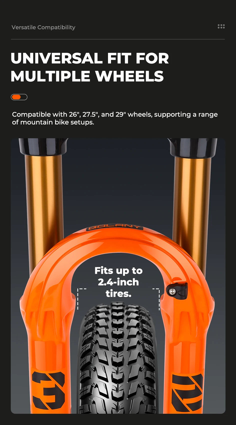 - Wheel Sizes: 27.5" / 29" (Compatible with 26", 27.5", and 29" wheels)