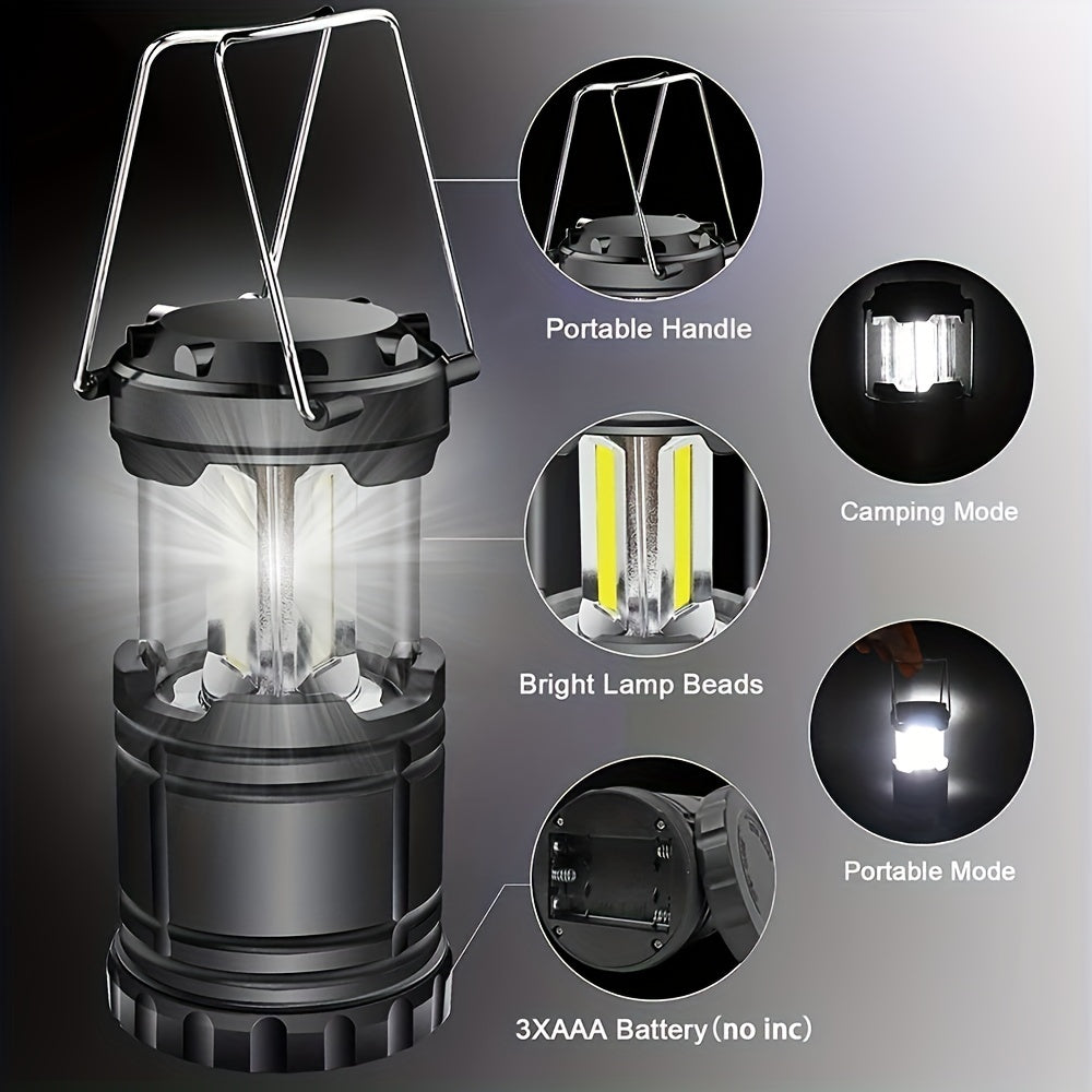 Ultra-Bright COB LED Technology for 360-Degree Illumination: Equipped with advanced COB LED technology, these lanterns provide 360-degree bright illumination, ensuring maximum visibility in dark or low-light conditions. Perfect for lighting up your campsite, tent, or any outdoor area.