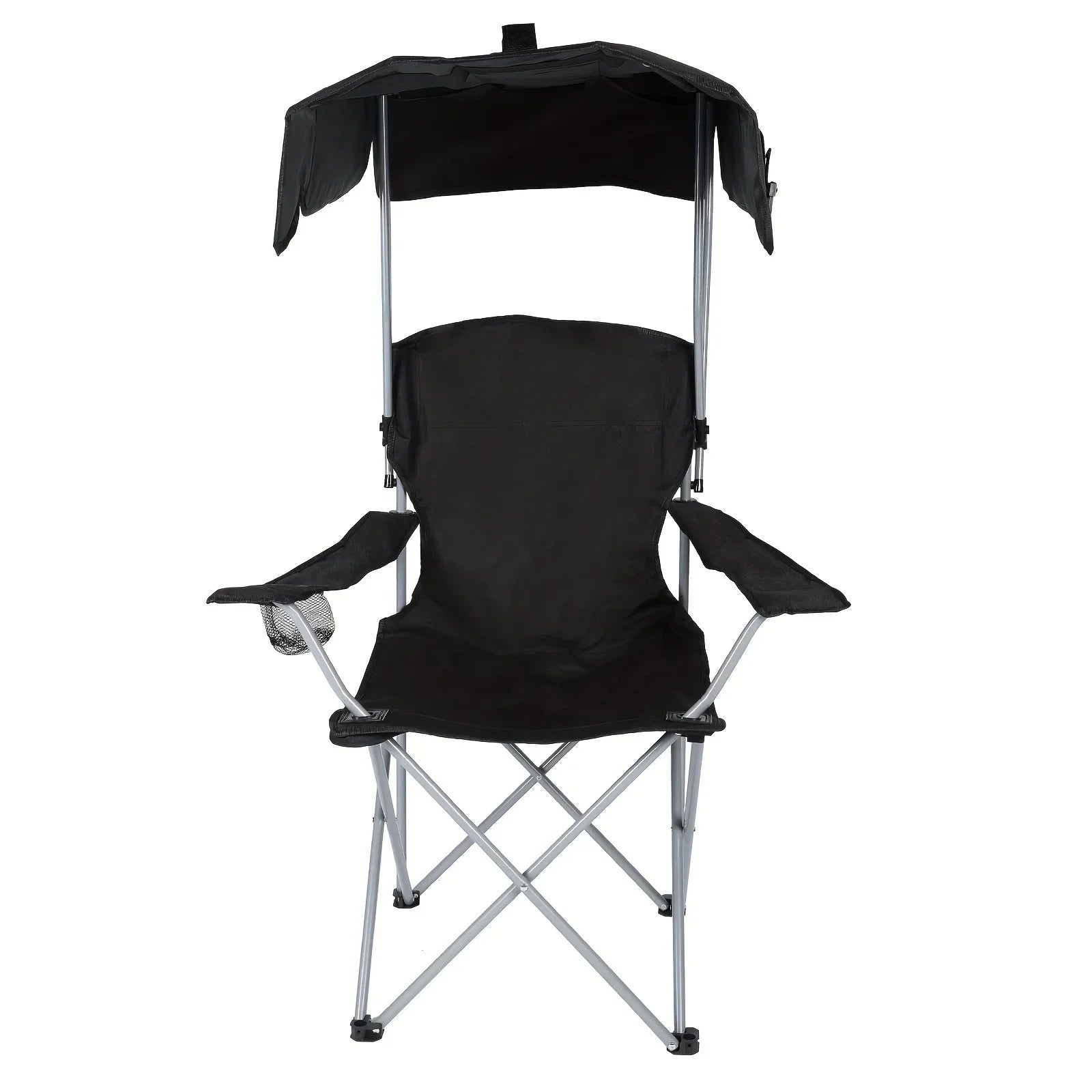 Canopy Lounge Chair with Sunshade – Portable Outdoor Camping & Hiking Chair with Holder, 1-Pack