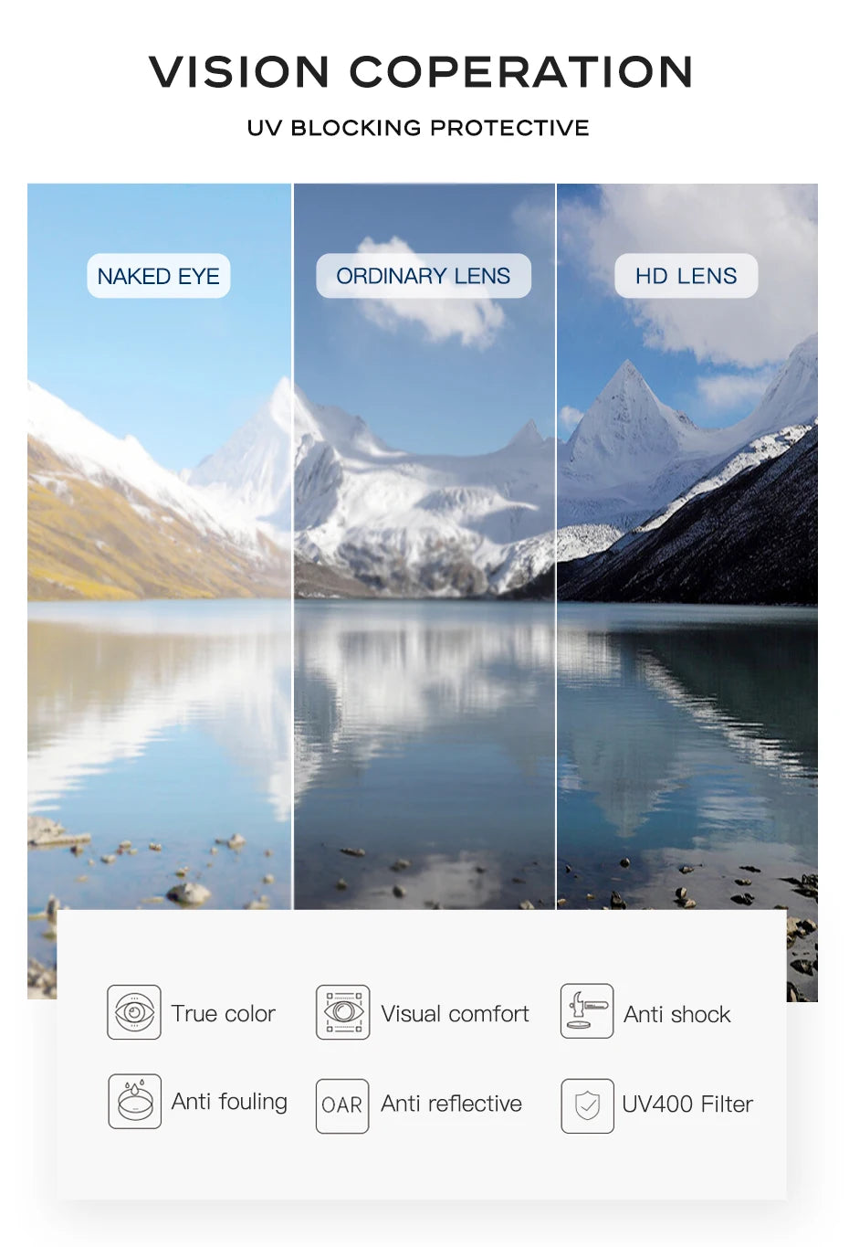 Polarized Lenses for Glare Reduction: The polarized TAC lenses effectively reduce glare, making them ideal for outdoor activities like driving, fishing, or traveling. Say goodbye to squinting and hello to improved clarity with these advanced lenses that filter out reflective light and reduce glare from surfaces like water or roads.