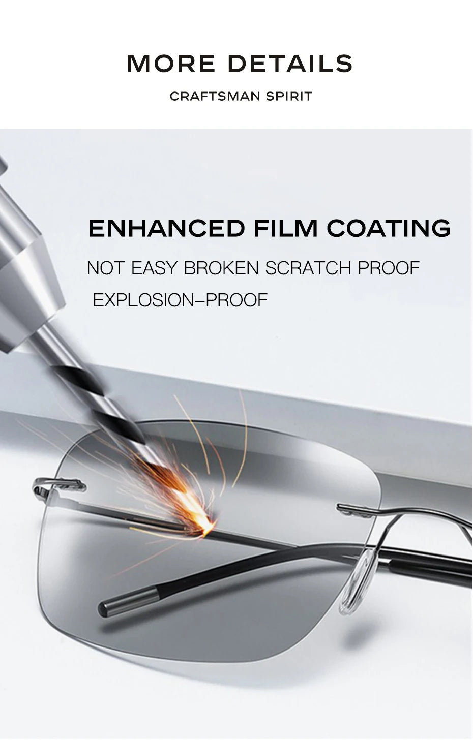 Rimless Design for a Sleek Look: The rimless square design offers a timeless, stylish look that’s both sleek and sophisticated. Lightweight yet durable, this alloy frame makes these sunglasses perfect for everyday wear, whether you're out in the city or on an adventure in nature.
