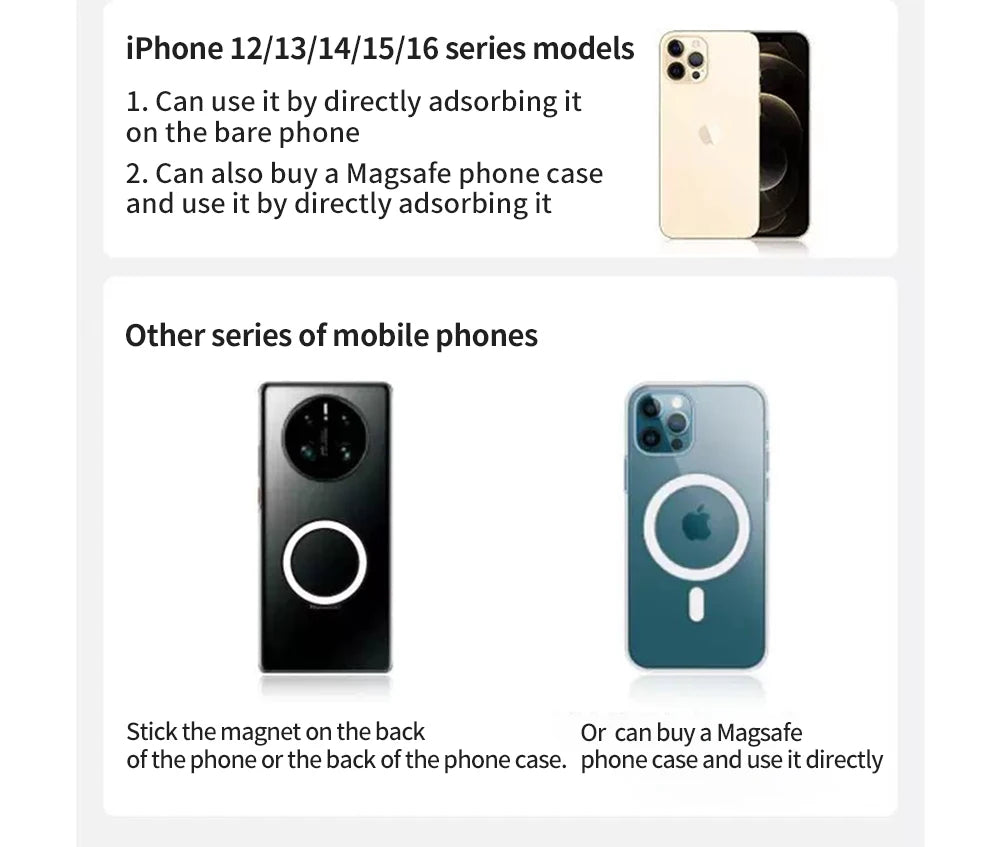 Strong magnetic adsorption: Built-in high-strength magnet ensures your phone stays in place even on bumpy roads. Compatible with iPhone 12-16 Pro Max and other Apple devices.