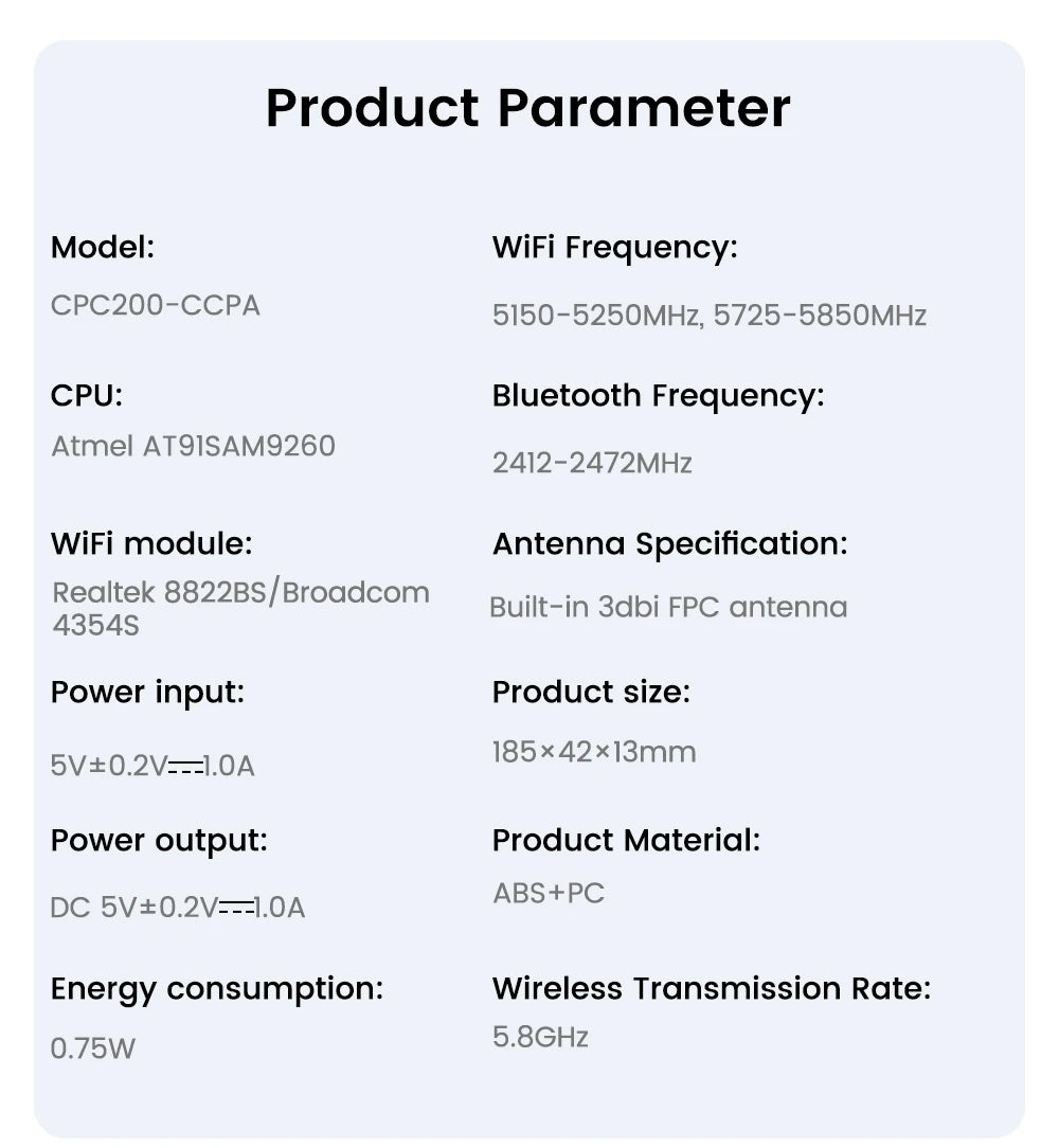 Say goodbye to messy cables! Once paired, the dongle automatically connects via 5GHz Wi-Fi, so your phone syncs with your car as soon as you enter. The CCPA model supports wireless CarPlay and wireless Android Auto, while CCPW supports wireless CarPlay and wired Android Auto, and CCPM supports wired CarPlay and Android Auto.
