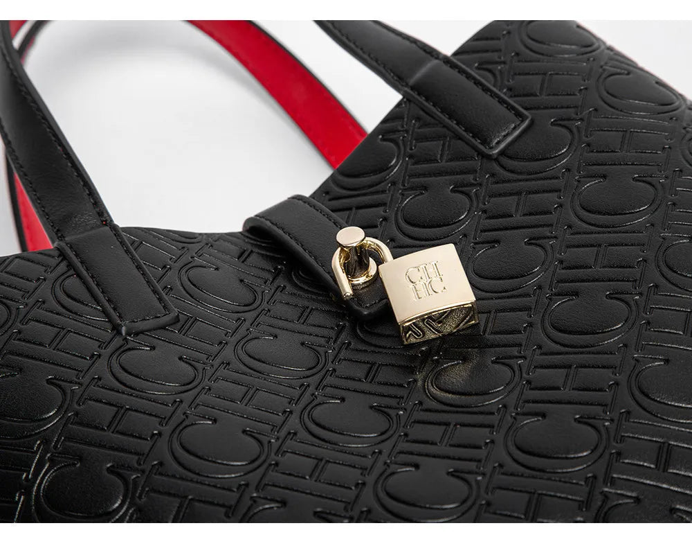 CH Fashion Women’s Shoulder Bag – Large Capacity Casual PU Leather Handbag with Embossed Letters