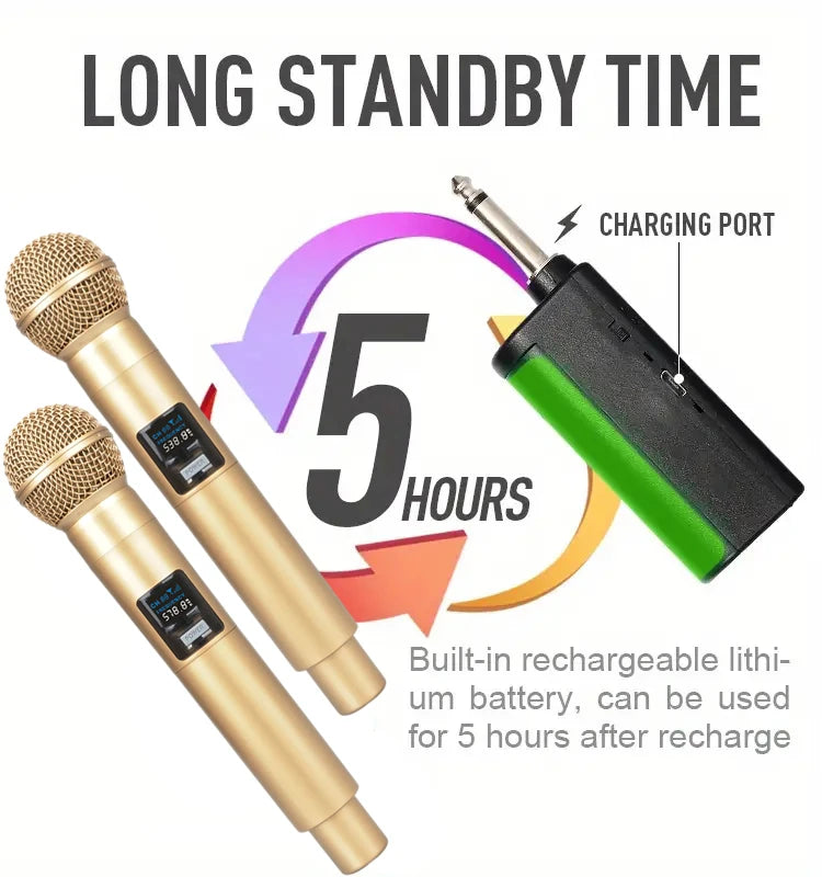 Gold 2.4GHz Wireless Handheld Microphone – Dynamic DJ Recording & Mixer Mic