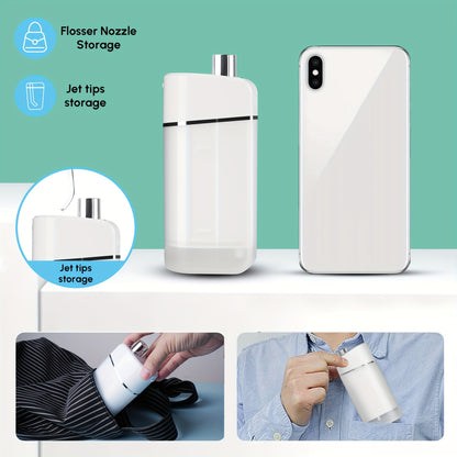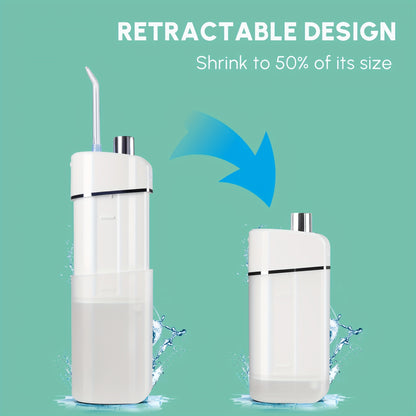Cordless Rechargeable Portable Water Flosser - Efficient Plaque Remover, Telescopic Water Tank, Travel Bag, Alcohol-Free Formula for Healthy Gums and Teeth - White