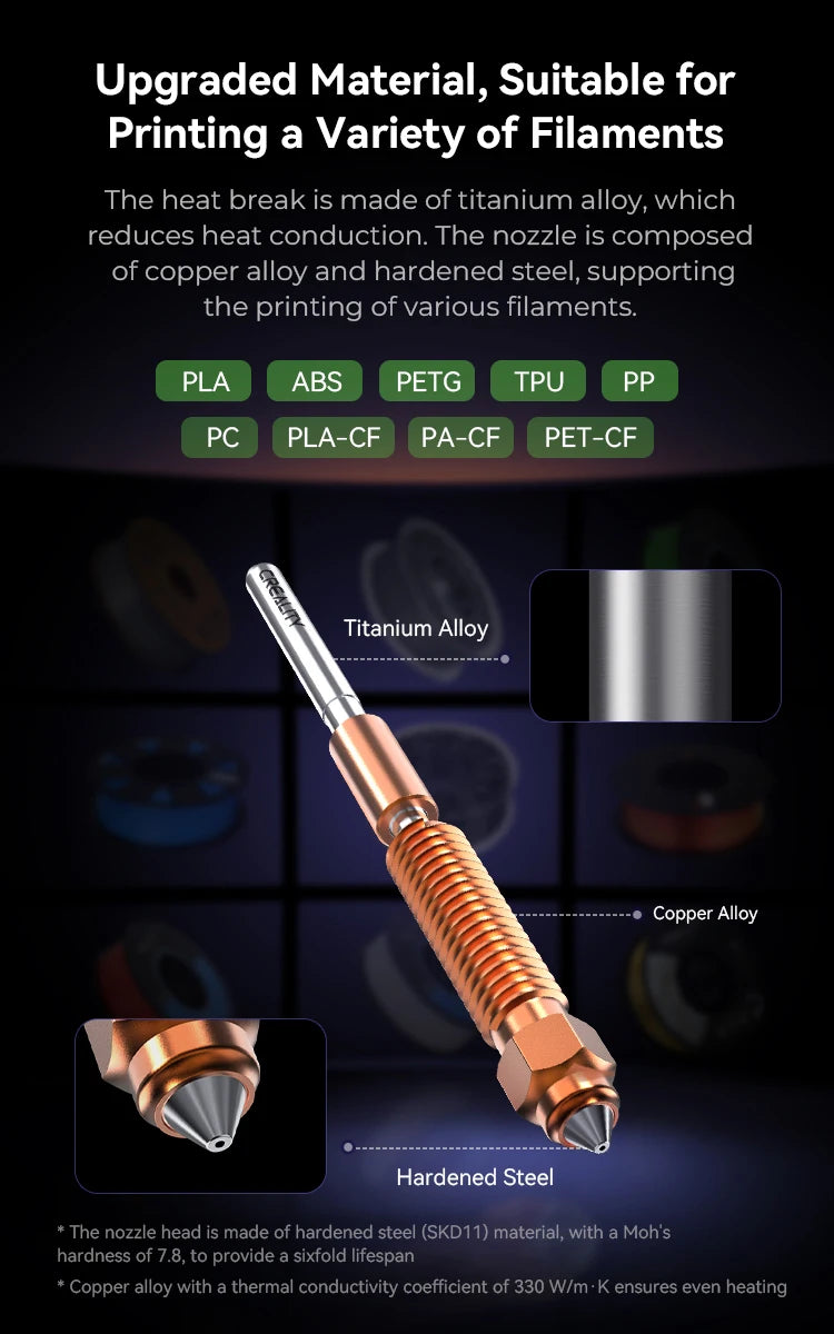 ✅ Handles Up to 300°C – Print with a wide range of filaments, including PLA, ABS, PETG, TPU, PA, PC, PLA-CF, PA-CF, PET-CF, and more!