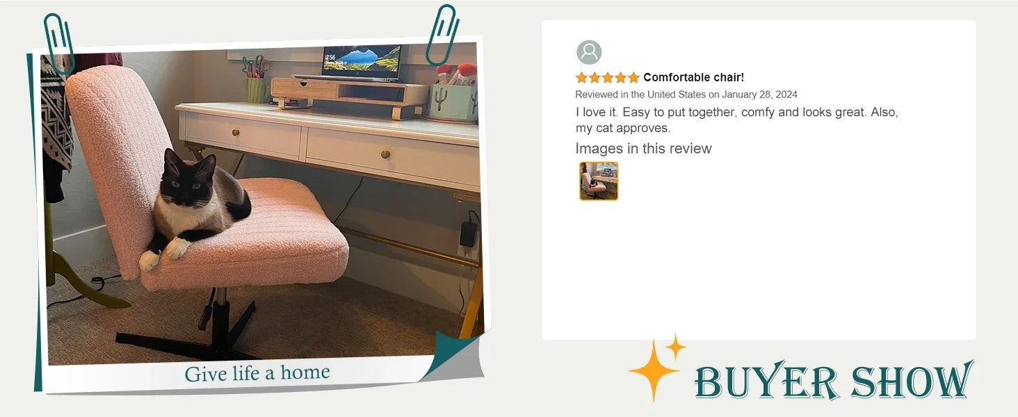 This is not your ordinary desk chair—it’s a statement piece! Its swivel functionality and no-wheel base ensure stability and style, while the wide seat provides ample space for comfort. Perfect for tasks that require focus or simply adding a chic vibe to your home.