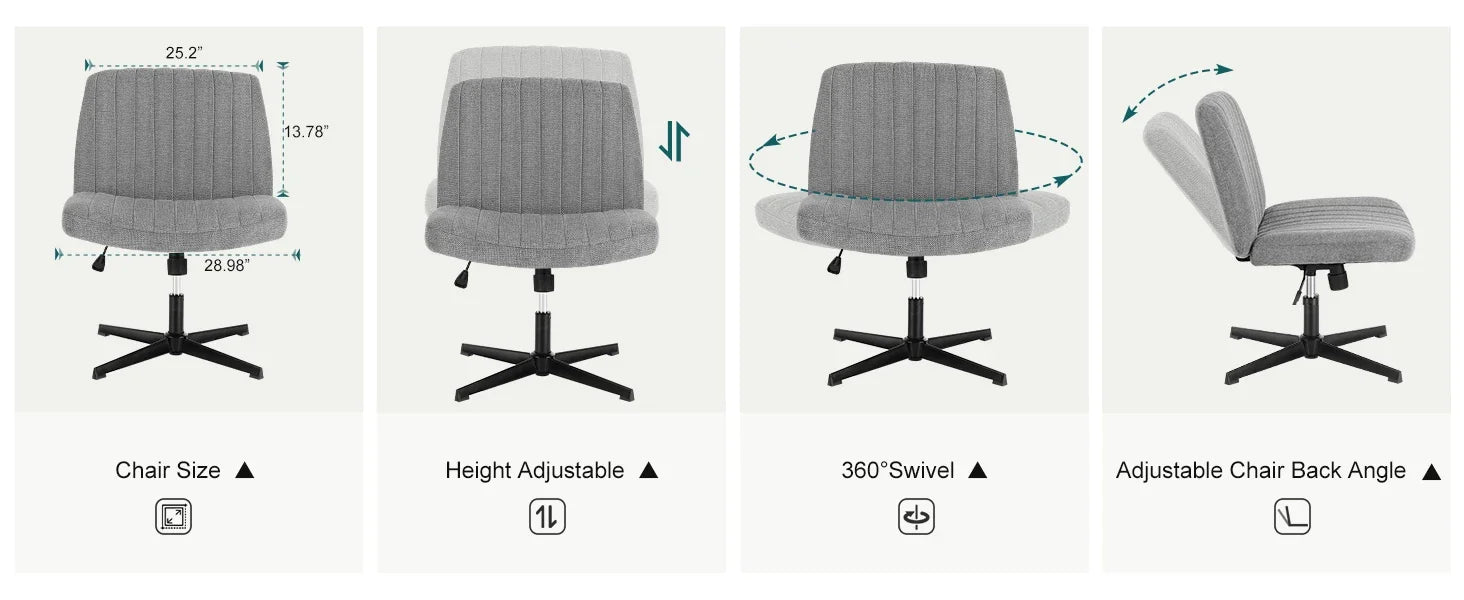 Armless Criss Cross Legged Swivel Office Chair - Wide Desk Chair Without Wheels