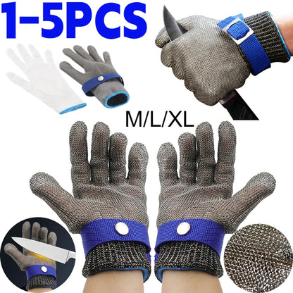 Stainless Steel Cut-Resistant Gloves - Anti-Cut, Wire Metal Mesh Hand Protection for Butchering, Gardening, and Work Safety