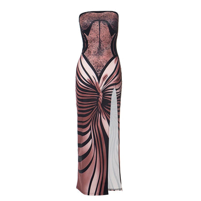 Designed to flatter, this wrap dress hugs your curves in all the right places. The strapless neckline exudes a bold and elegant charm, allowing you to showcase your décolletage, while the high split adds a dash of daring. It's both sensual and sophisticated, ensuring you'll turn heads at any event.