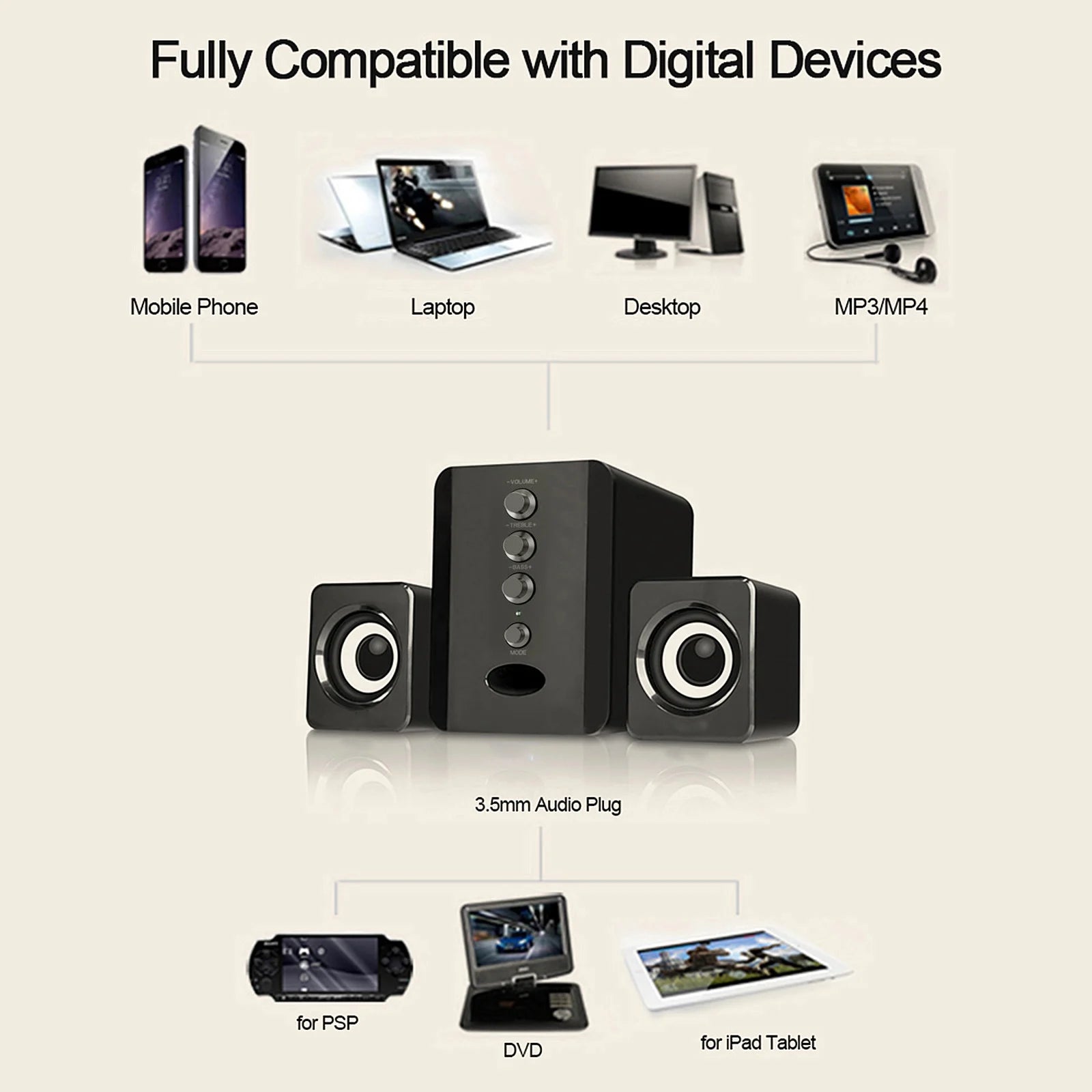 Wide Compatibility: These speakers work seamlessly with desktop computers, laptops, tablets, smartphones, TVs, and any other device with a 3.5mm audio port. Whether you're using it for work, play, or streaming content, the D-202 provides exceptional audio performance for all your devices.