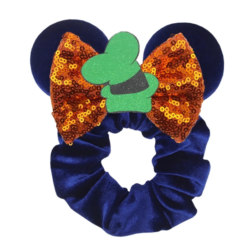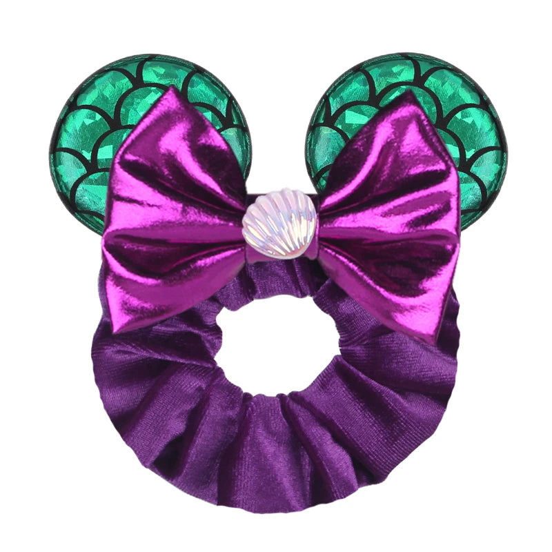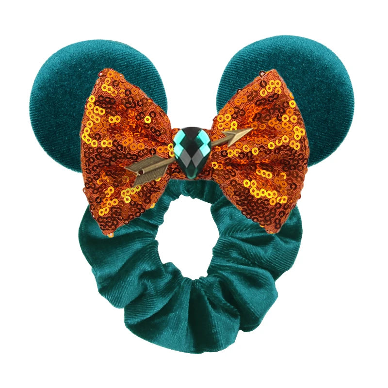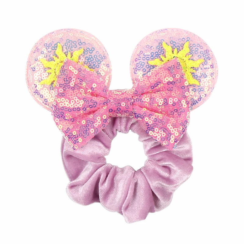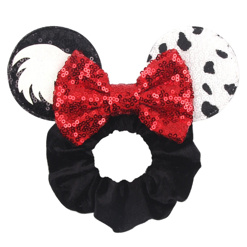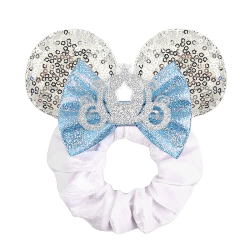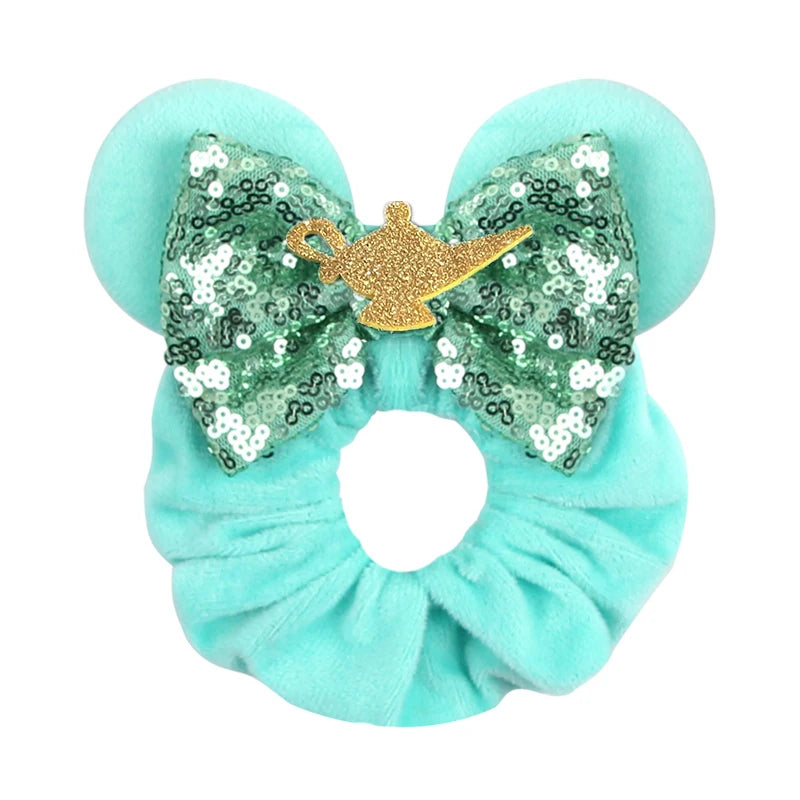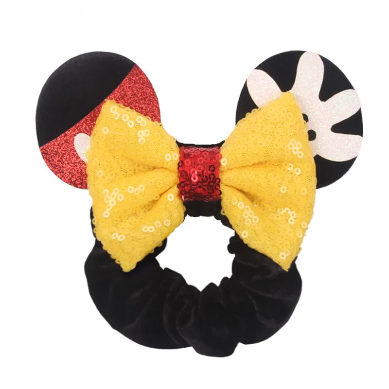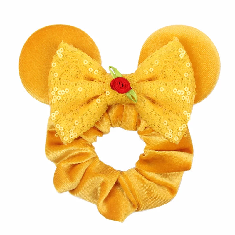 Disney Mouse Ears Velvet Scrunchies: Elastic Ponytail Holder with Sequin Bow - Perfect Hair Accessories for Women, Girls, and Kids' Parties