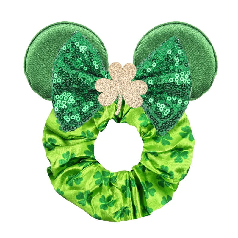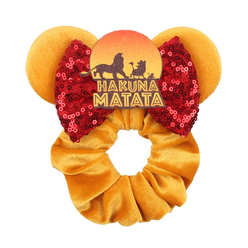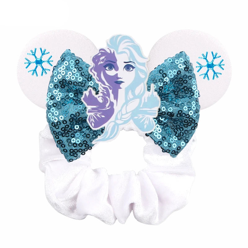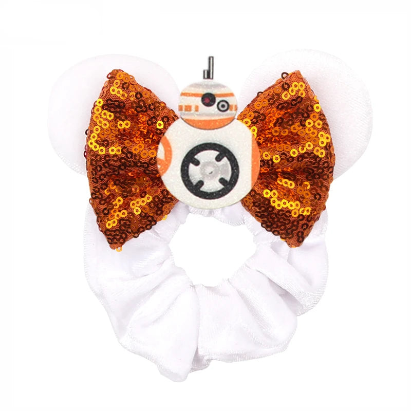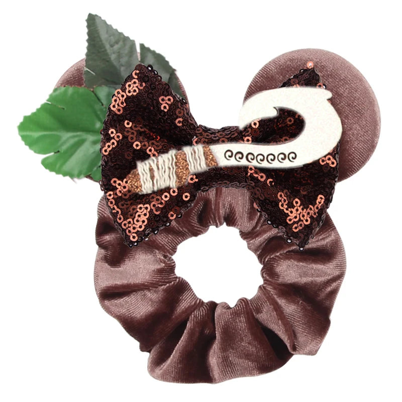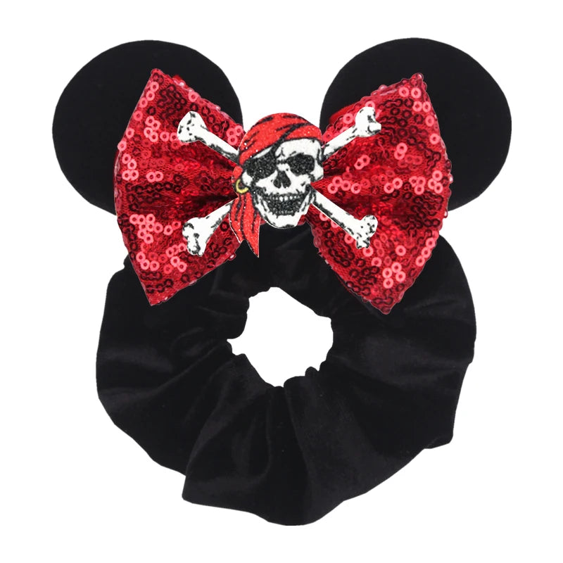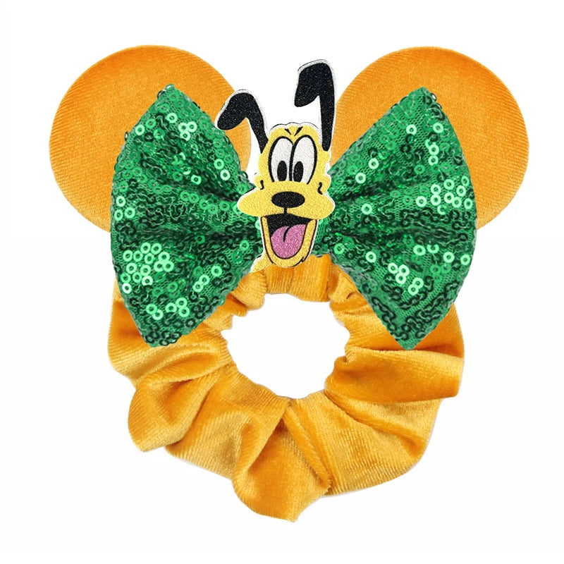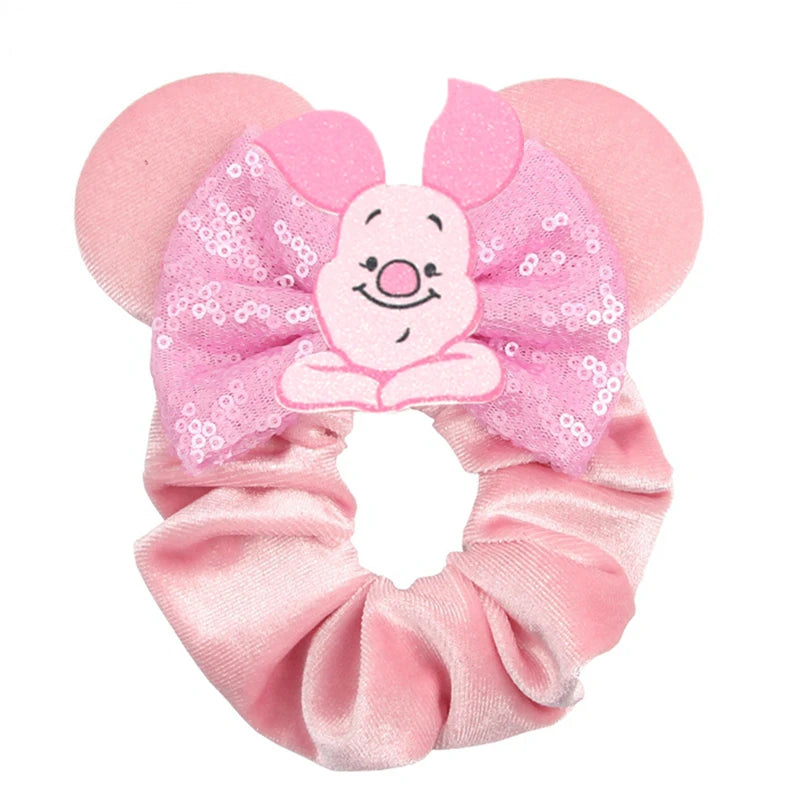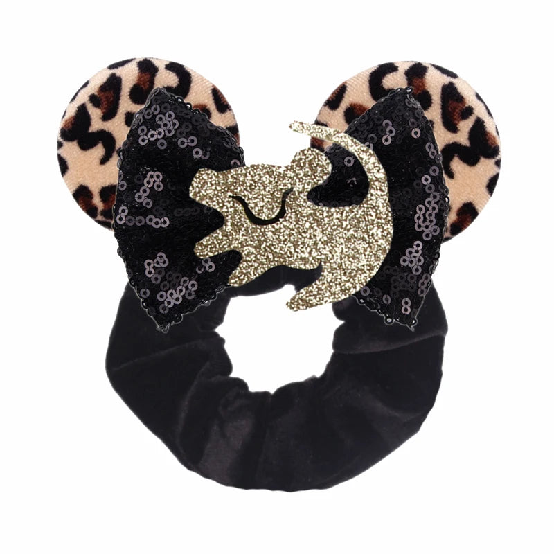 Disney Mouse Ears Velvet Scrunchies: Elastic Ponytail Holder with Sequin Bow - Perfect Hair Accessories for Women, Girls, and Kids' Parties