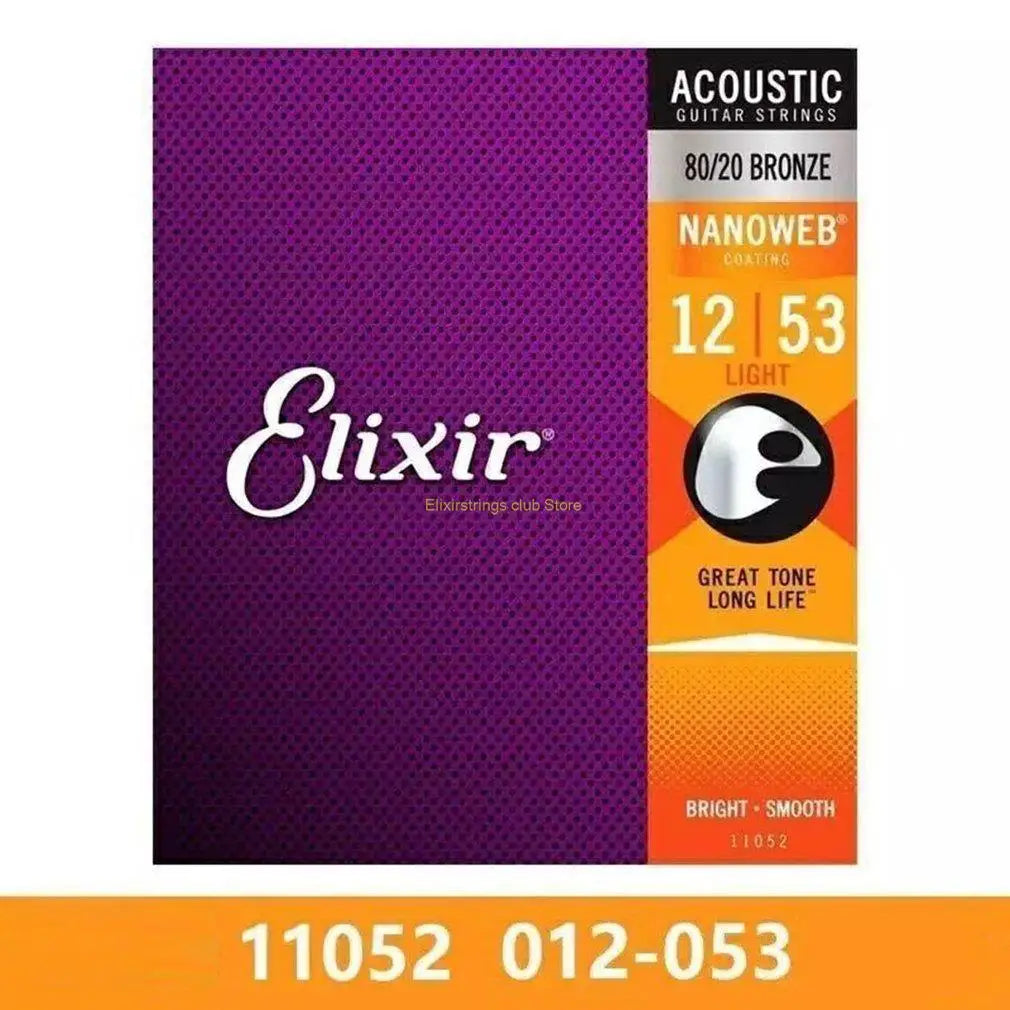 Elixir Acoustic Guitar Strings - 80/20 Bronze Nickel for Electric Play, Ideal for Popular Music and Rock (11002, 16052, 16027, 11-52)