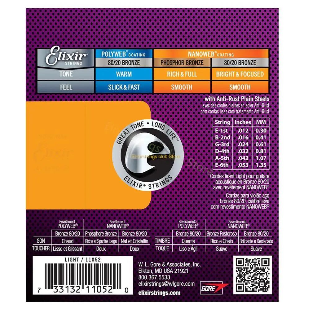 Unparalleled Protection for Unmatched Sound The Elixir Acoustic Guitar Strings stand alone as the only coated string brand that shields the entire string with an ultra-thin coating. This revolutionary design blocks oil and dirt from penetrating the gaps between the windings, ensuring your strings stay fresh, vibrant, and tonally brilliant longer than any other string on the market, coated or uncoated.