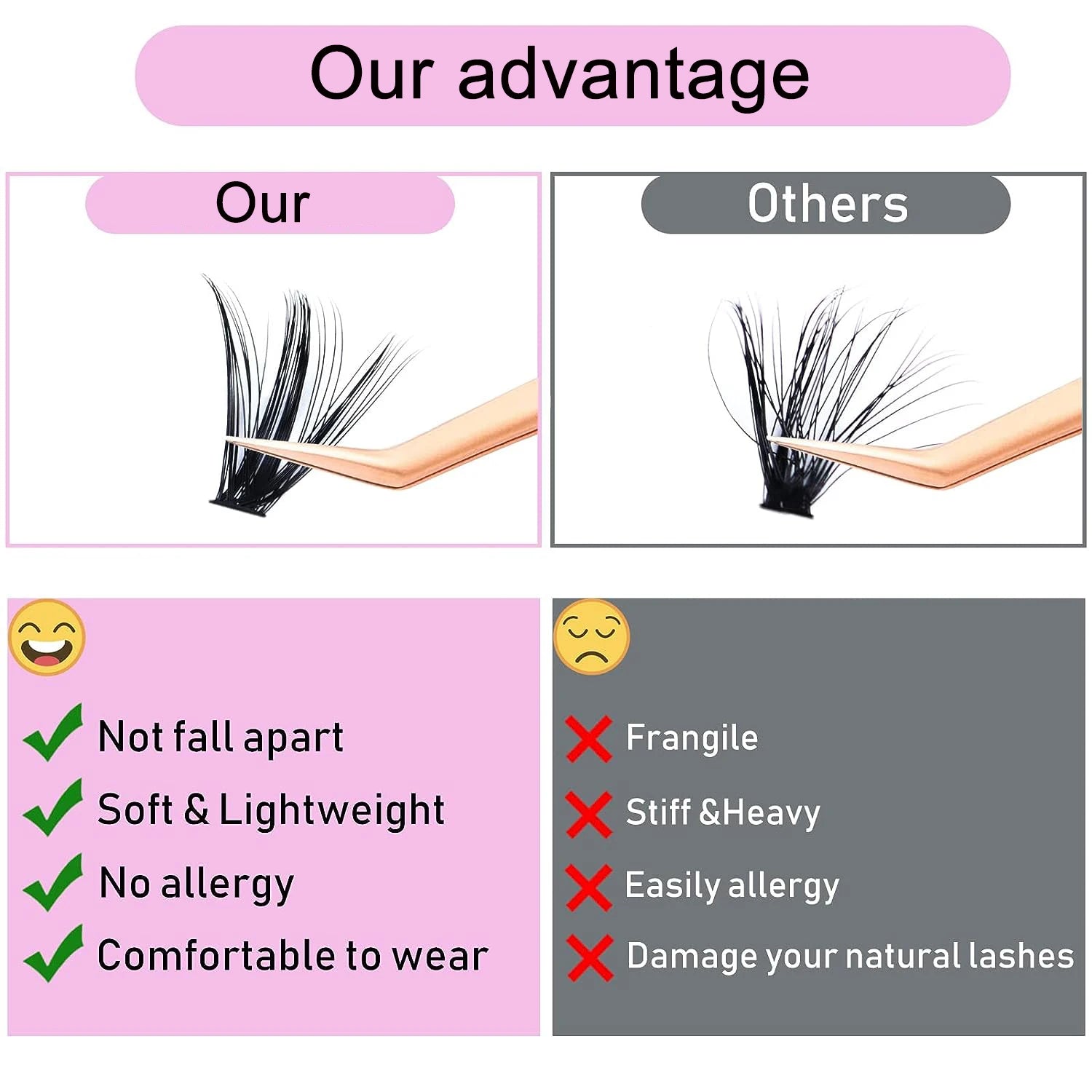 This kit isn't just about quantity; it's about quality and convenience. Alongside the 240 lash clusters, you'll find everything you need for a flawless application: lash bond for a strong, durable hold, and a lash seal that locks your lashes in place while protecting them from the elements. Our lashes are designed to be lightweight and comfortable, making them perfect for prolonged wear.