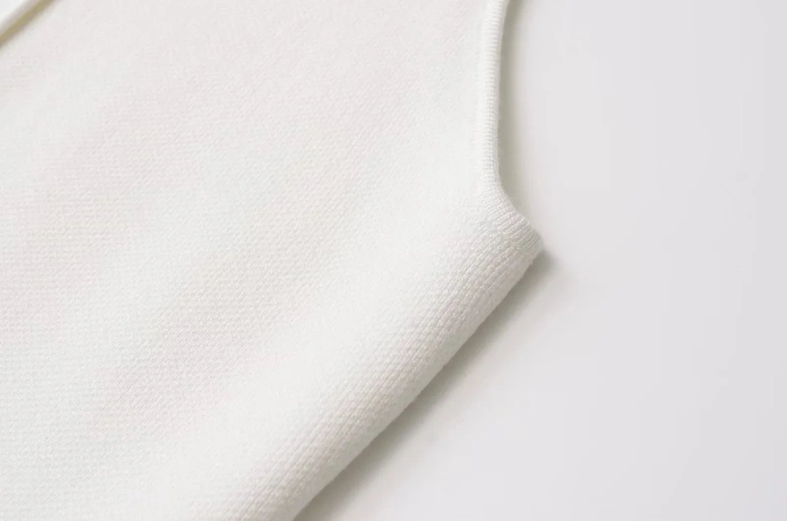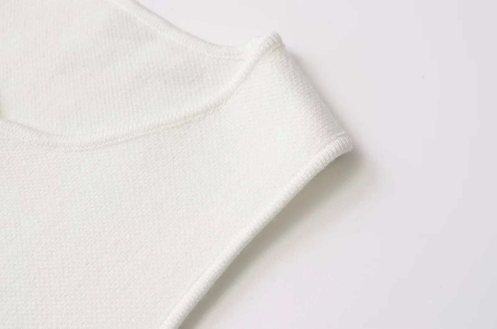 Fall 2025 Knit Vest for Women – Sleeveless Cropped Asymmetrical Slim Sweater Top – White Basic Slim Shirt