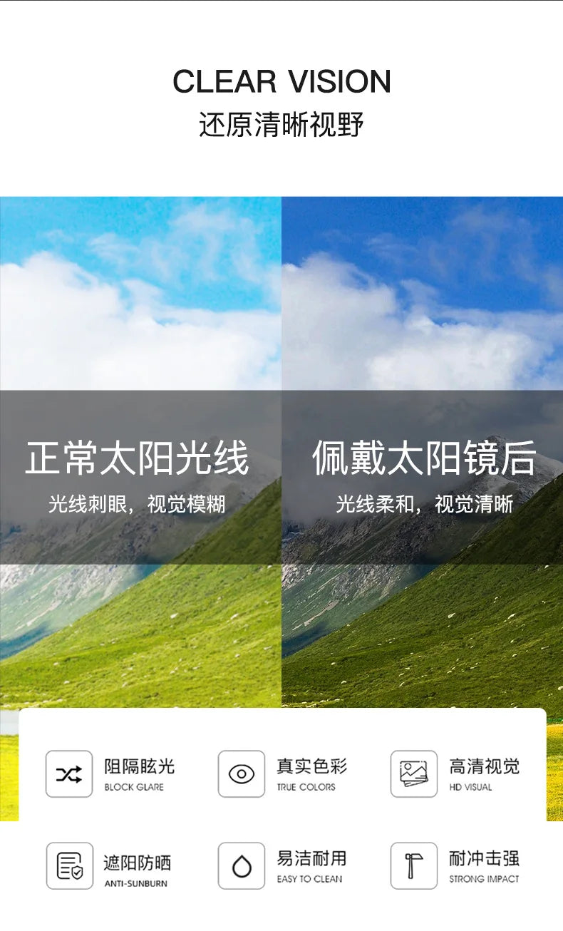 Gradient + UV400 Protection: Stylish lenses that not only look good but also block 100% of harmful UV rays—perfect for sunny days and sensitive eyes.