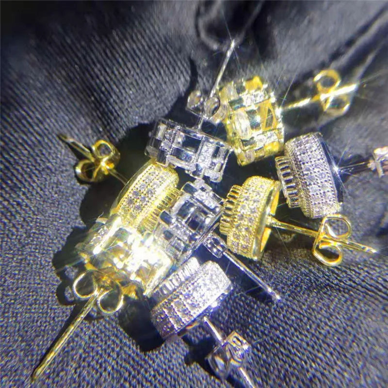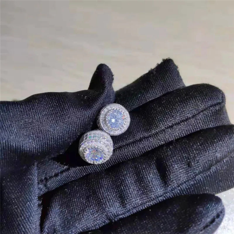Austrian Crystal Round Earrings for Women – White Gold & Yellow Gold Color, White Zircon Hip Hop Wedding Stud Jewelry