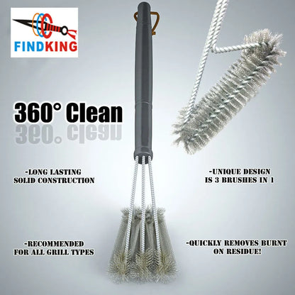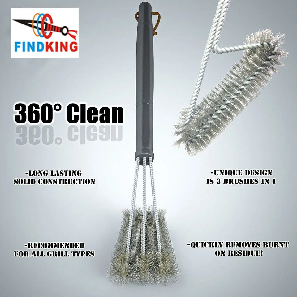FINDKING Grill Cleaning Brush - BBQ Tool with 3 Stainless Steel Brushes in 1 - Best Barbecue Cleaner and BBQ Accessories