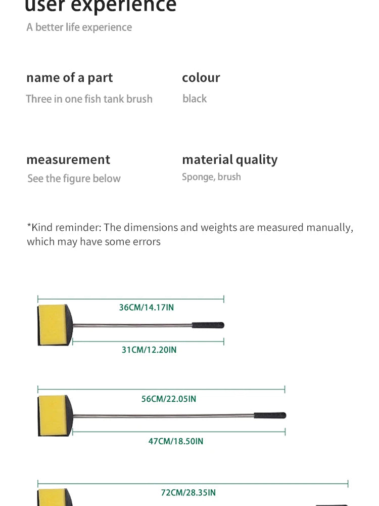 ✅ Long Handle for Easy Reach – The 36cm long handle allows you to easily clean the bottom, sides, and hard-to-reach corners of your tank without getting your hands wet.
