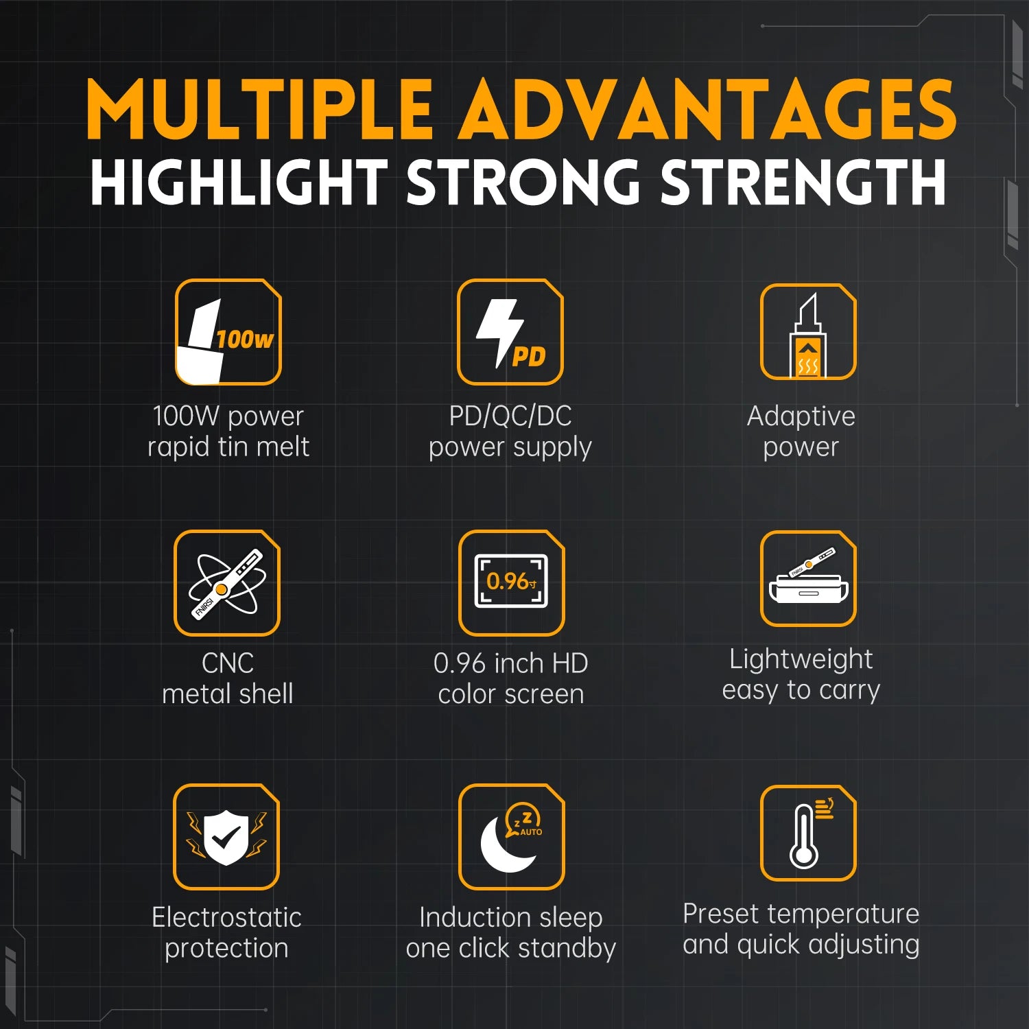 Rapid Heating & Temperature Control: Enjoy rapid heat-up times and precise temperature control with the HS-02. The soldering iron heats up quickly to your desired temperature, allowing you to start your work without delay. The 0.96-inch HD color screen provides clear and accurate temperature readings for enhanced control.