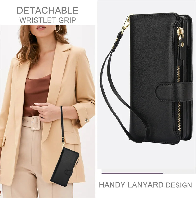 Upgrade your foldable phone protection with this all-in-one leather wristband wallet case — style, safety, and convenience wrapped into one sleek package!