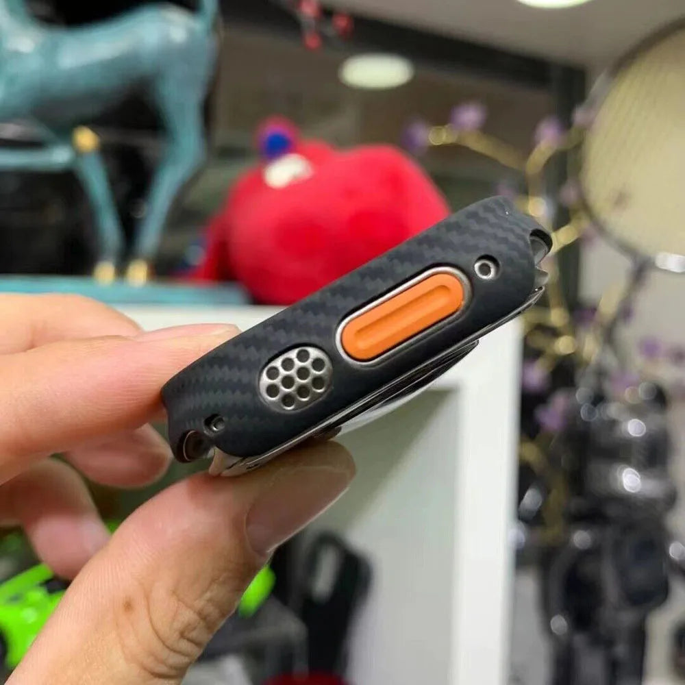 If you’re looking for a premium, ultra-slim case that offers both protection and style, look no further. This carbon fiber bumper case ensures that your Apple Watch S8, S9, or Ultra 2 stays safe from daily wear and tear while looking sleek and sophisticated. Whether you’re hitting the gym, the office, or the weekend getaway, your watch will have maximum protection in a lightweight, stylish package.