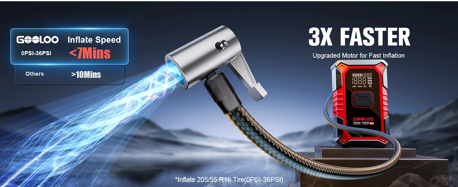 GOOLOO A3 3000A Jump Starter with Air Compressor – Portable Car Battery Booster for 9.0L Gas & 6.5L Diesel, 150PSI with Auto Shut-Off