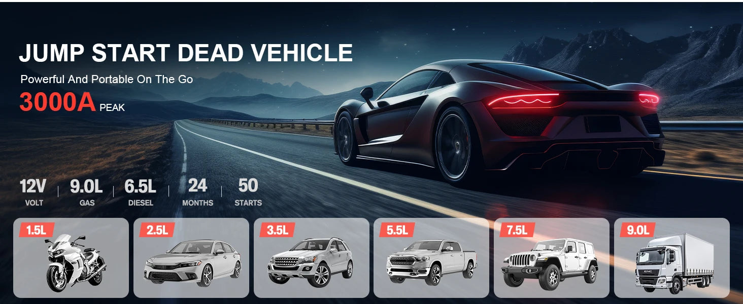 From motorcycles and RVs to yachts, forklifts, and standard cars, the A3 is engineered to tackle over 1000 jump starts in its lifetime. The powerful 3000A peak current and 400A starting current make dead batteries a thing of the past.